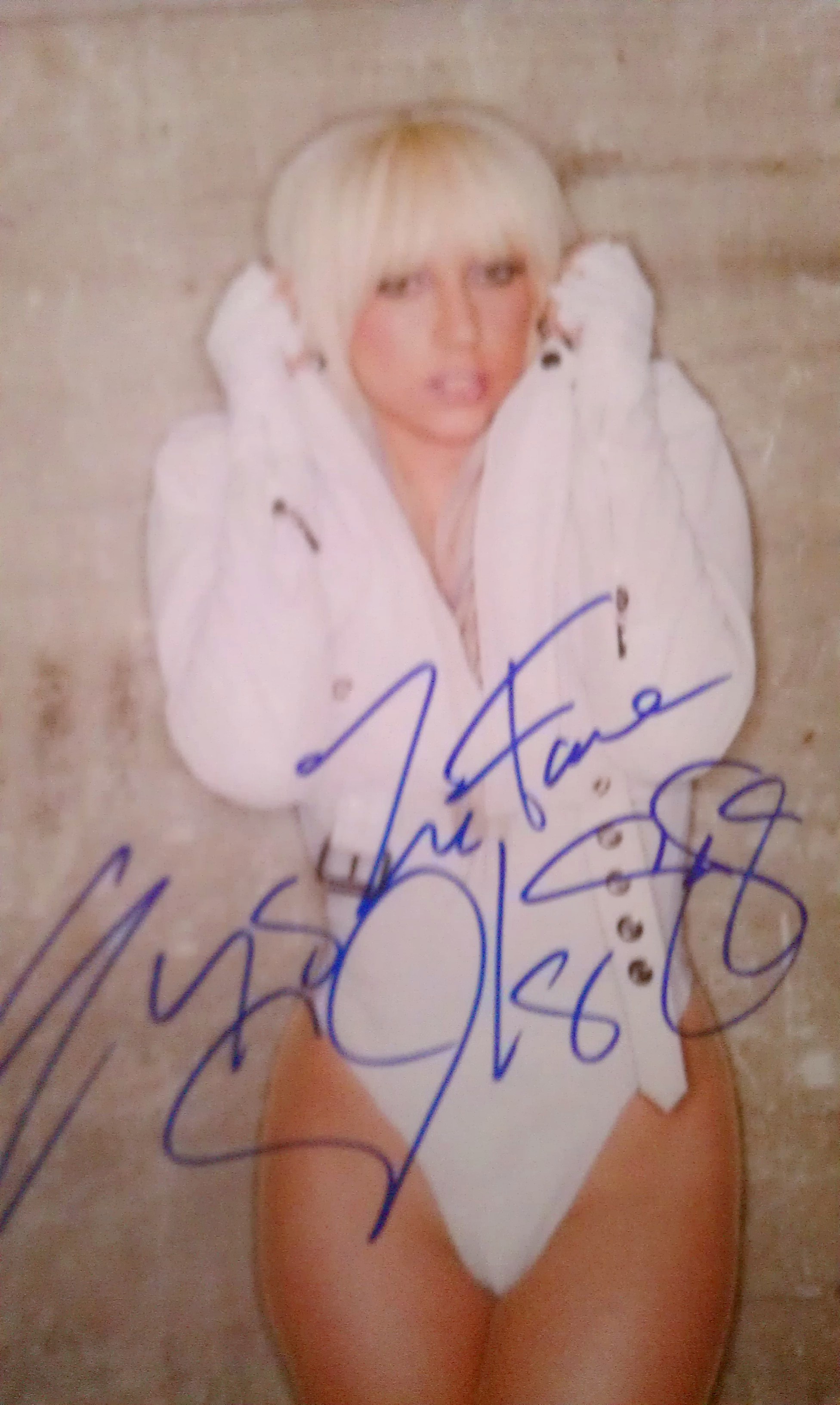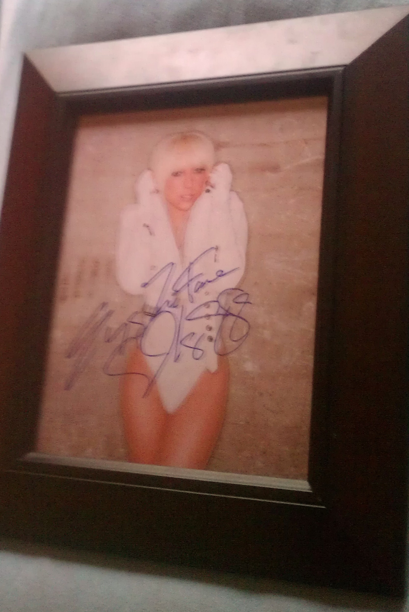 This is a autographed photograph of pop singer Lady Gaga. It was given to me as a Christmas present so I'm not sure how much the photograph was originally purchased for. The frame was bought seperate but I am including it when I sell this item.
