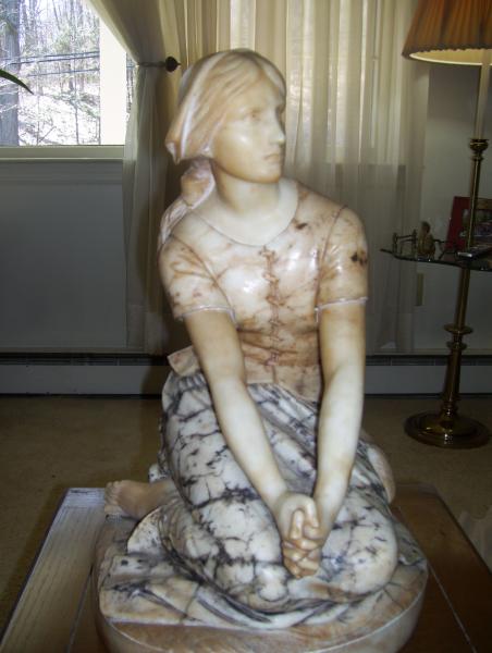 I have seen bronze replicas of this item selling for $2000-$8500. I believe this is the original marble statue that the molds for the bronze statues were made from. My grandfather use to tell the story that the man he bought this from wanted to buy it back for $500.