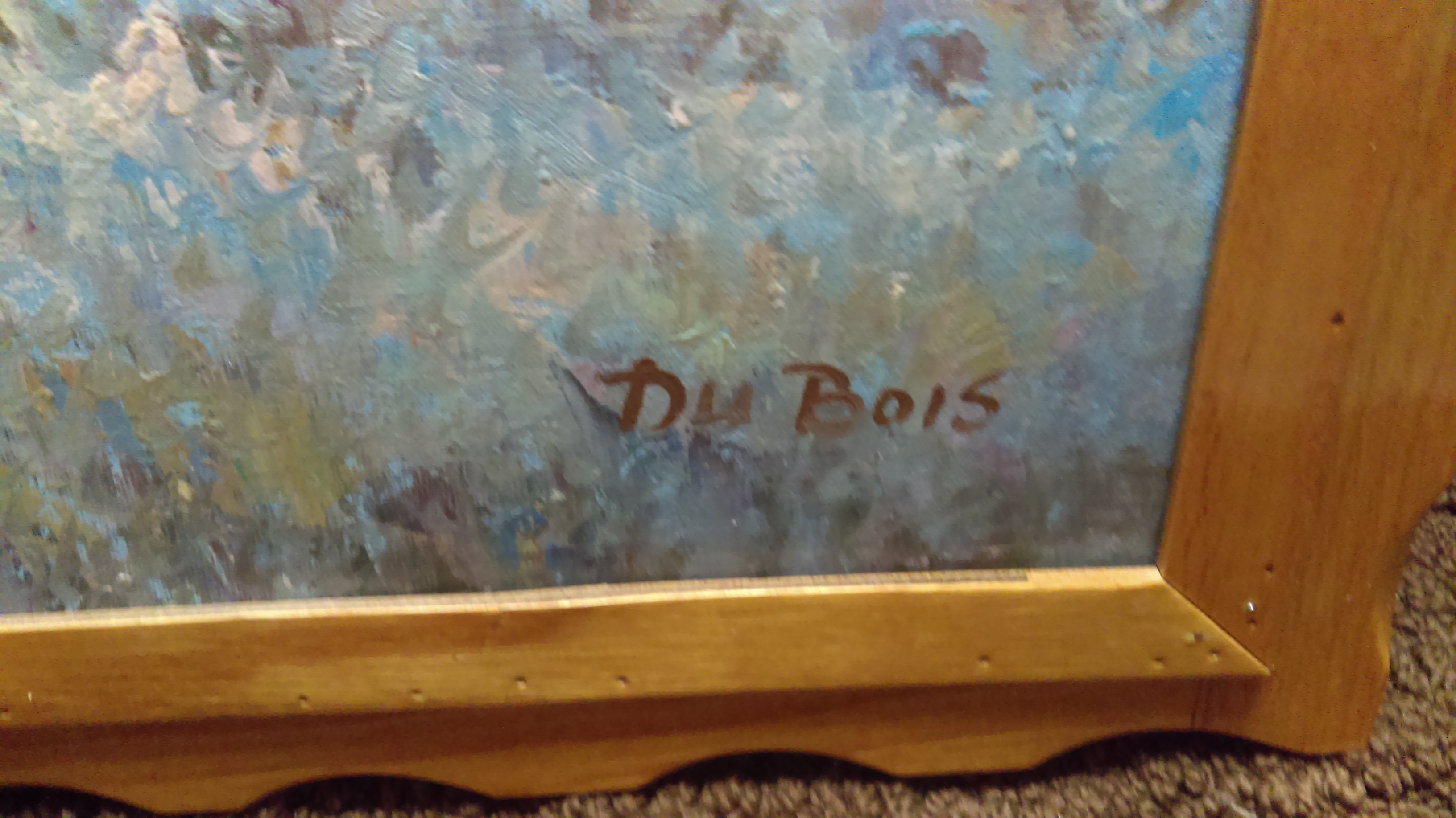 On canvas looks like antique frame wood thin holding corners of frame together on back