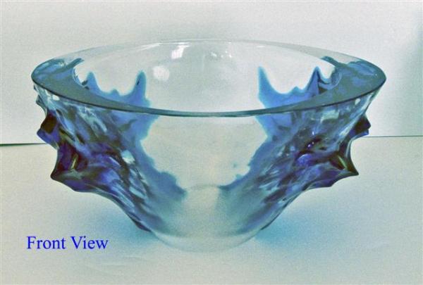 I received this beautiful Lalique Bowl as a gift from an aunt. She left many Lalique pieces and this is the only one I can't find any info on. The bottom is sandblasted, I believe, and says, LALIQUE, no 'R', with 'Cristal Lalique' etched underneath. I believe this makes the date post WW2. The ends have large attached pieces that look like Pagodas. It's in almost perfect shape with the only flaws being scratches on the very bottom where it sits on the table. The rest of it is perfect. The crystal is very thick and extremely heavy. Any help will be most appreciated.