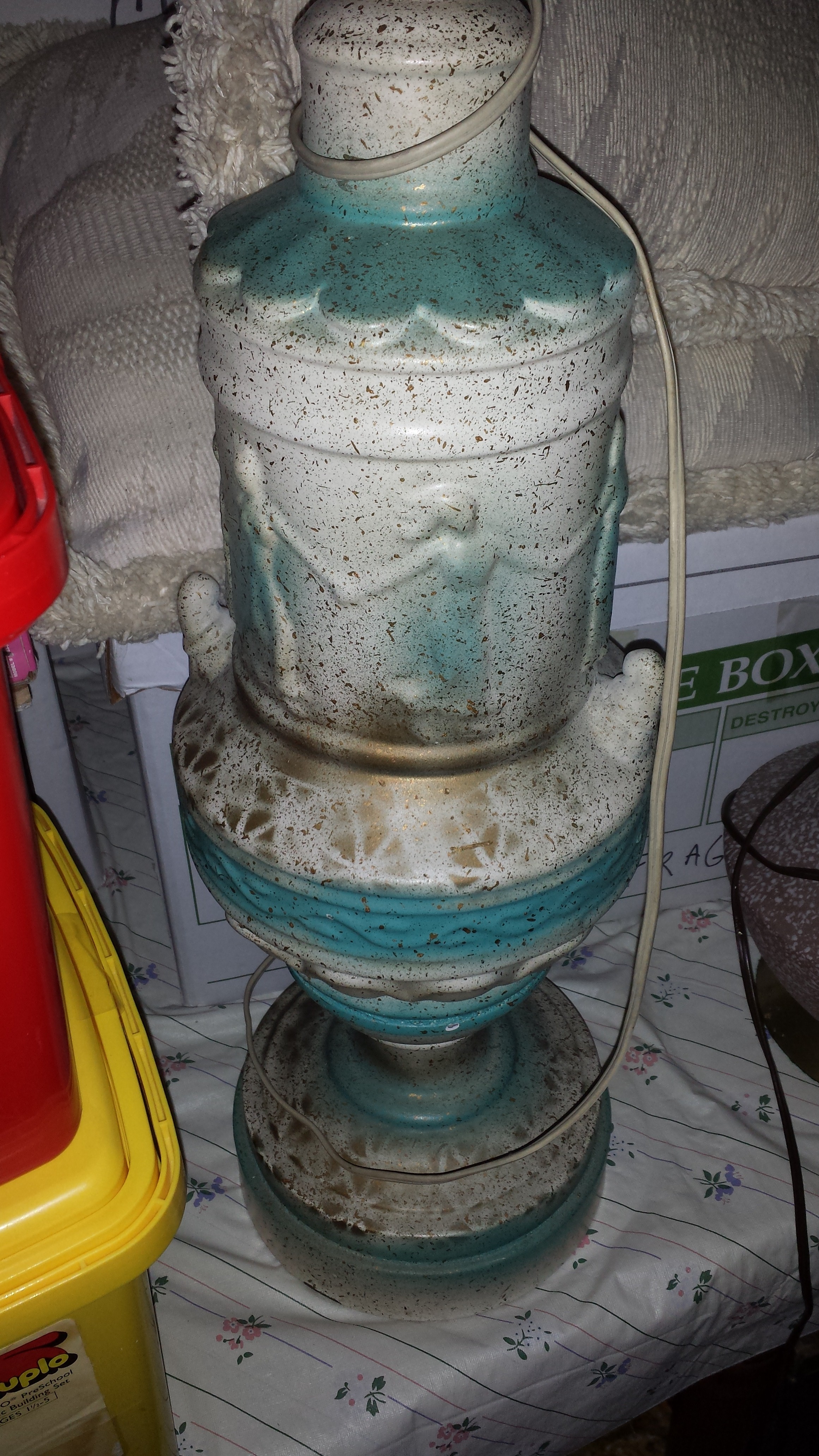 This lamp was purchased by my parents in the late 1940's or 1950's.  It has no markings or manufacturer information on it.  Socket uses a bulb with a larger base than normal light bulbs.