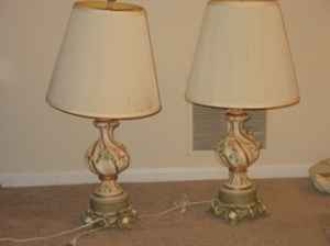 These lamps belonged to my grandmother. They are from the 1940s or 1950s. The lamp structure seems to be made of a heavy metal. The flowers are made of china. There are no markings or signatures on the bottom. Any information would be appreciated.