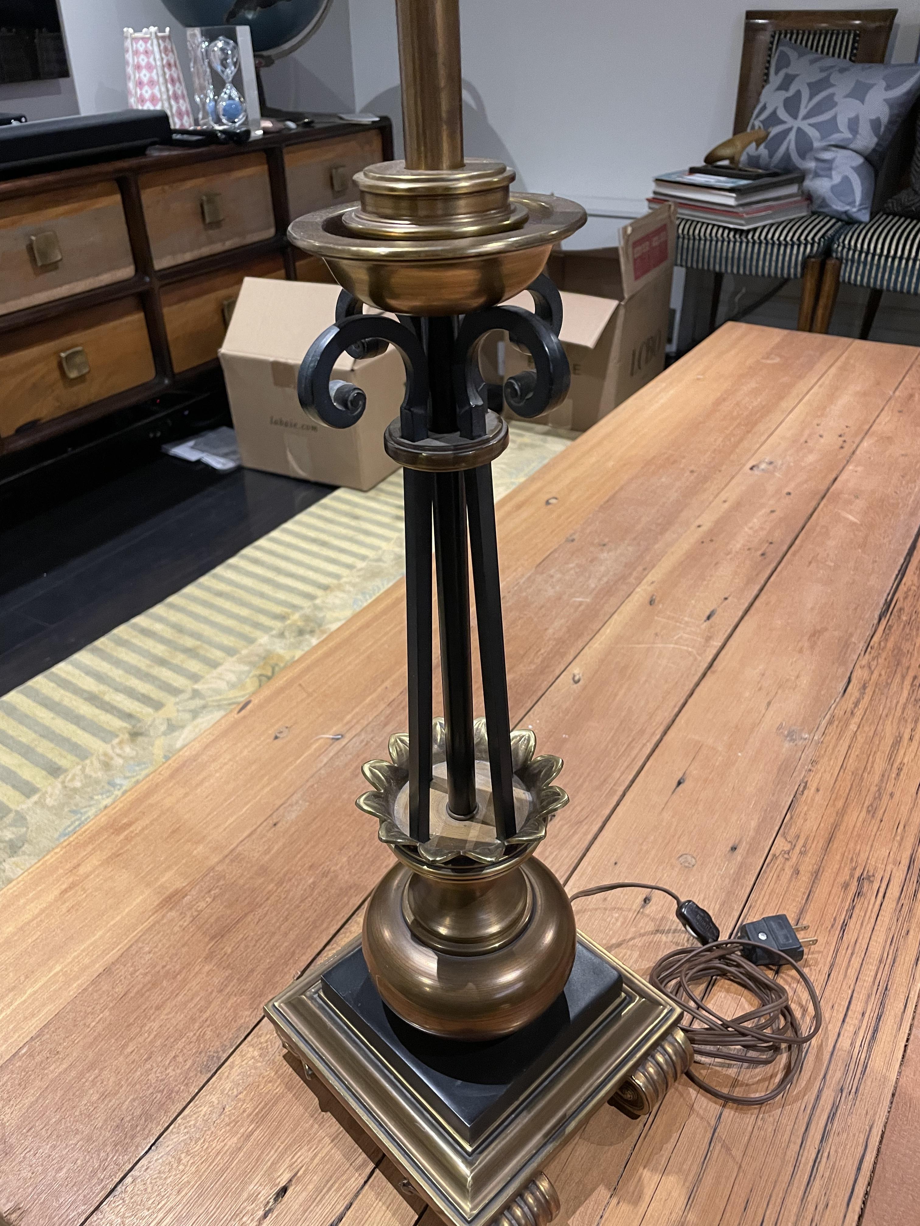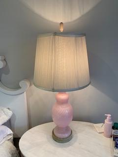 Perfect condition stifle lamp and 2 pink Murano glass table lamps with original silk shades, probably from late 40s-50s