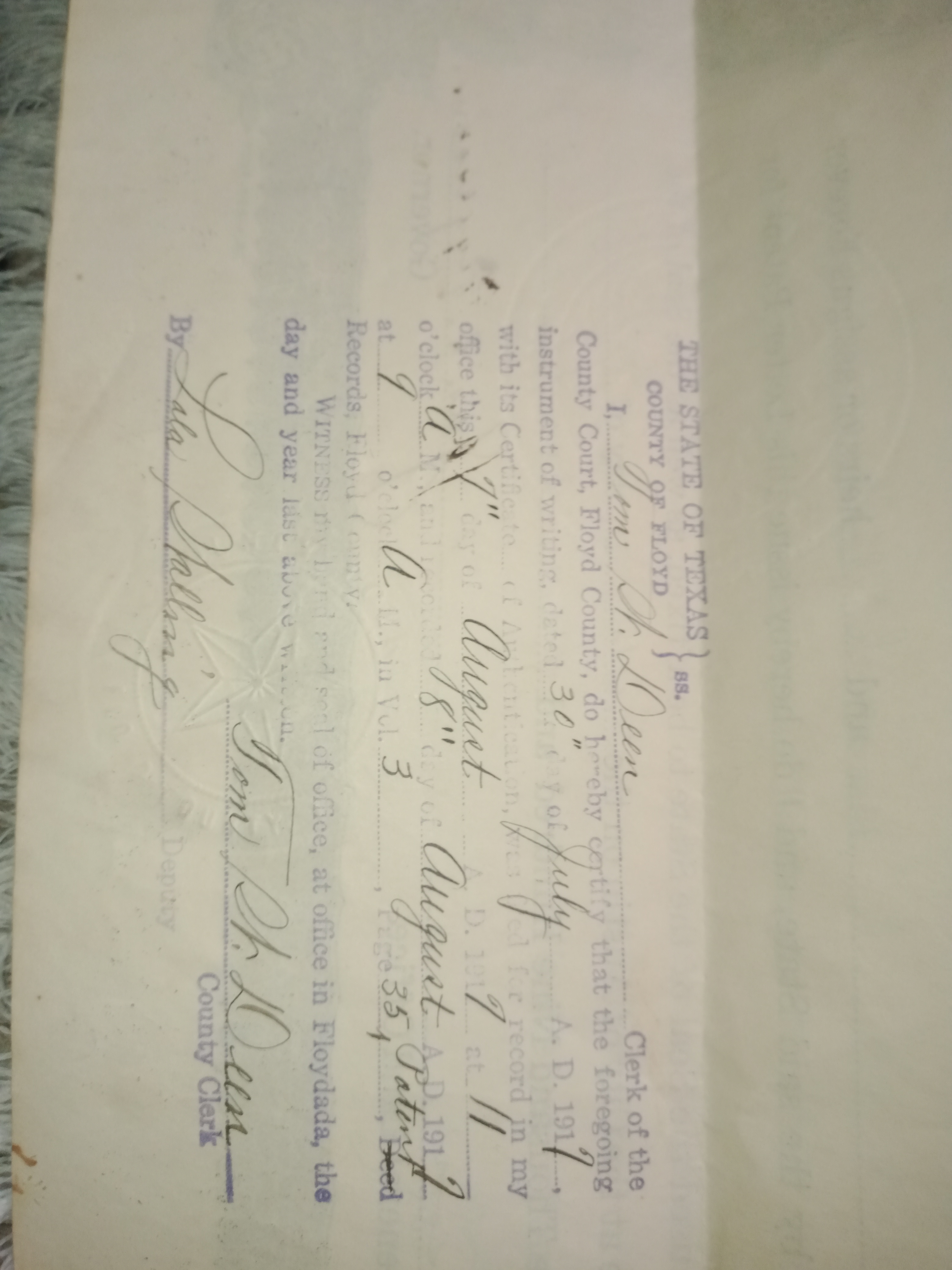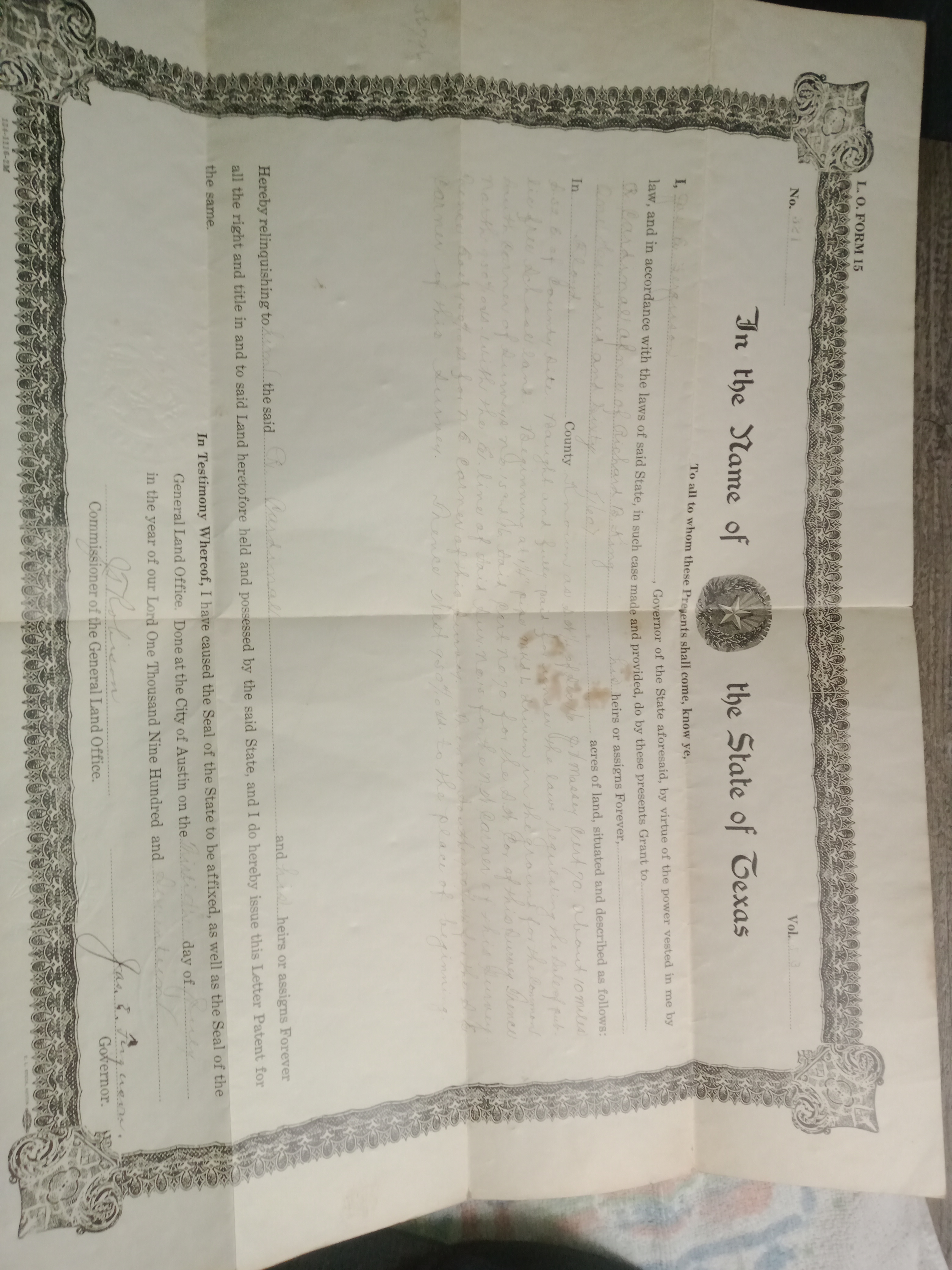 land deed from 1917 with the signature of the Governor of Tx. at the time i believe it could be evidence on reasons why he was impeached could be worth more than $$$ to others it could be worth nothing.