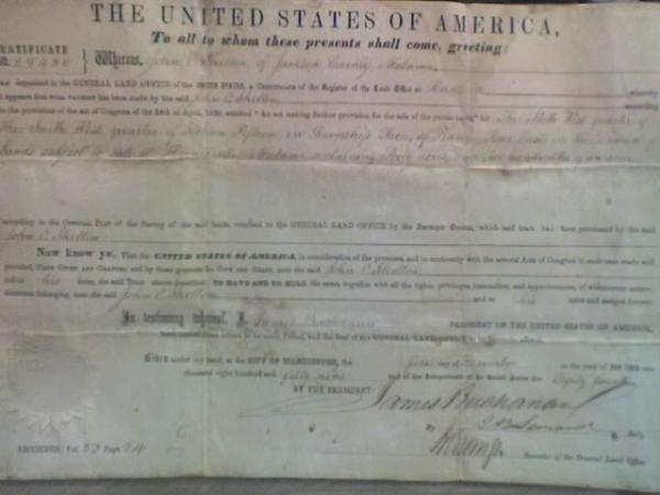 I have 2 land deeds from Huntsville,AL. The land was purchased by John O. Skelton in Dec. of 1859. I really dont have any more info. The deeds were gave to me by Jim Johnson from Anniston,AL. Both have the presidental seal & are hand signed.