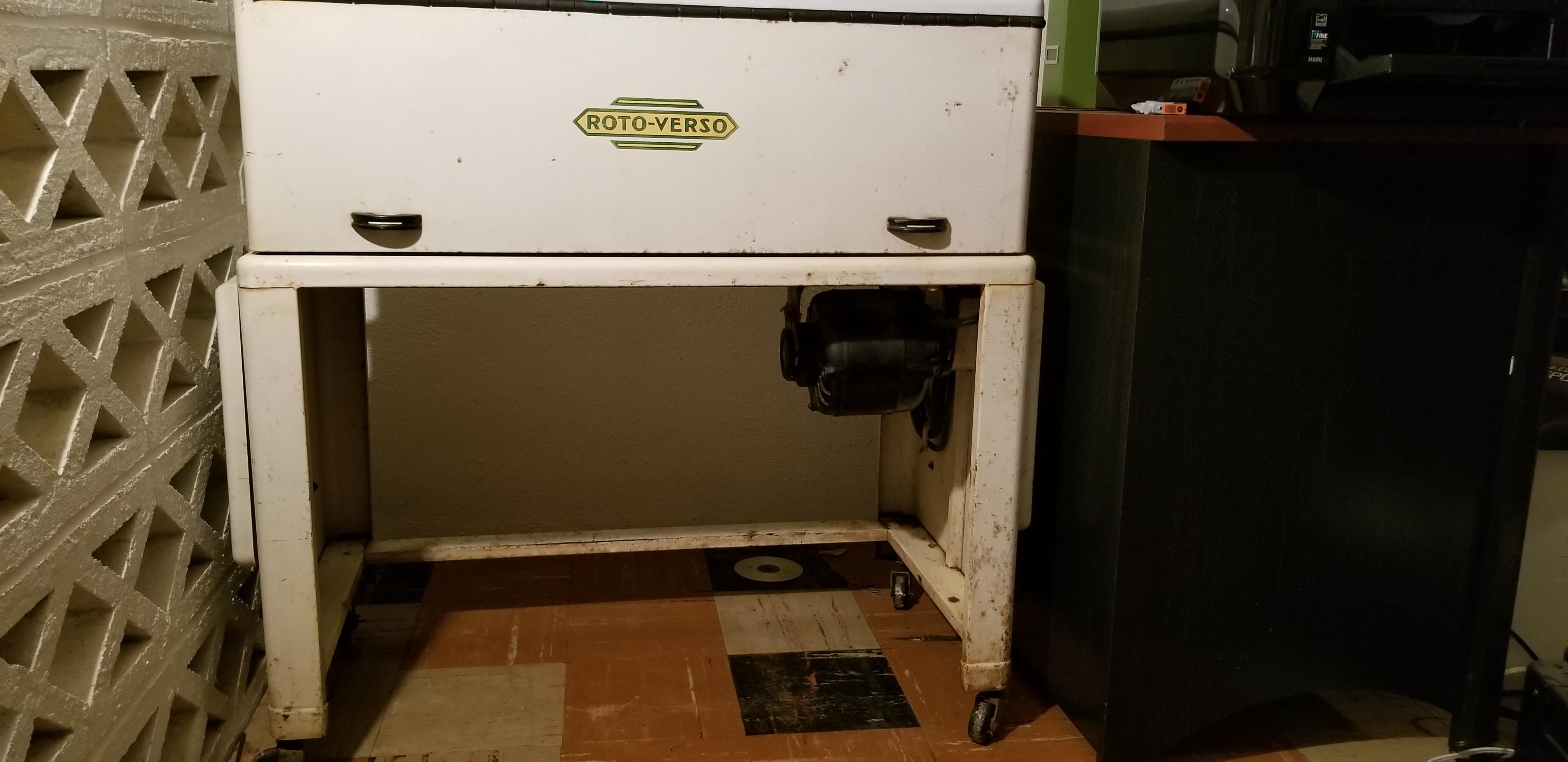 This is a De lux Roto Verso table top cabinet model ironer, as feaure in the attached ad.  Tested and it still works!  Have looked every where to find another one on-line, none that I can find.