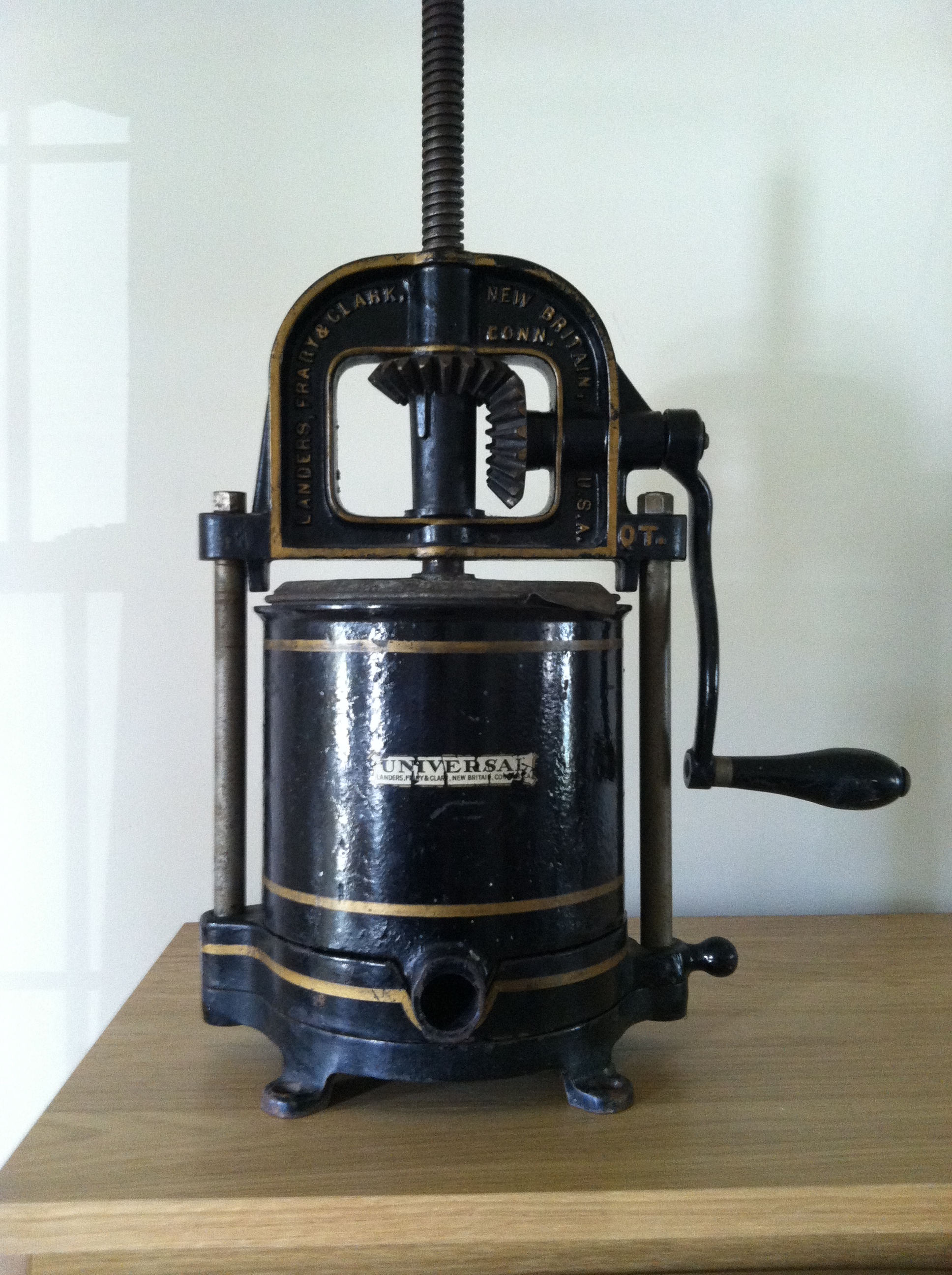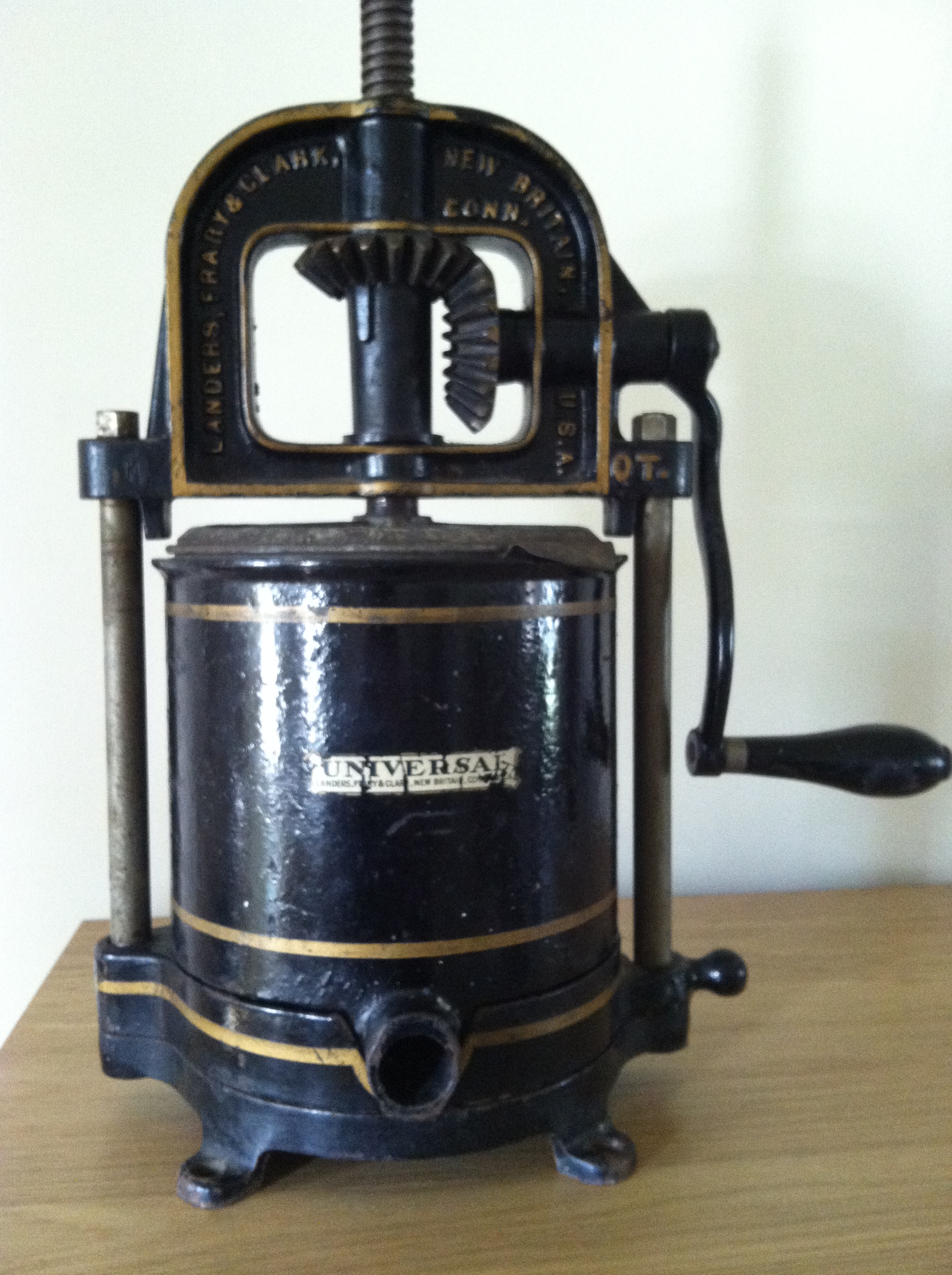Landers Frary & Clark Universal lard fruit press 6 qt - Universal print on the base one plate - cast iron