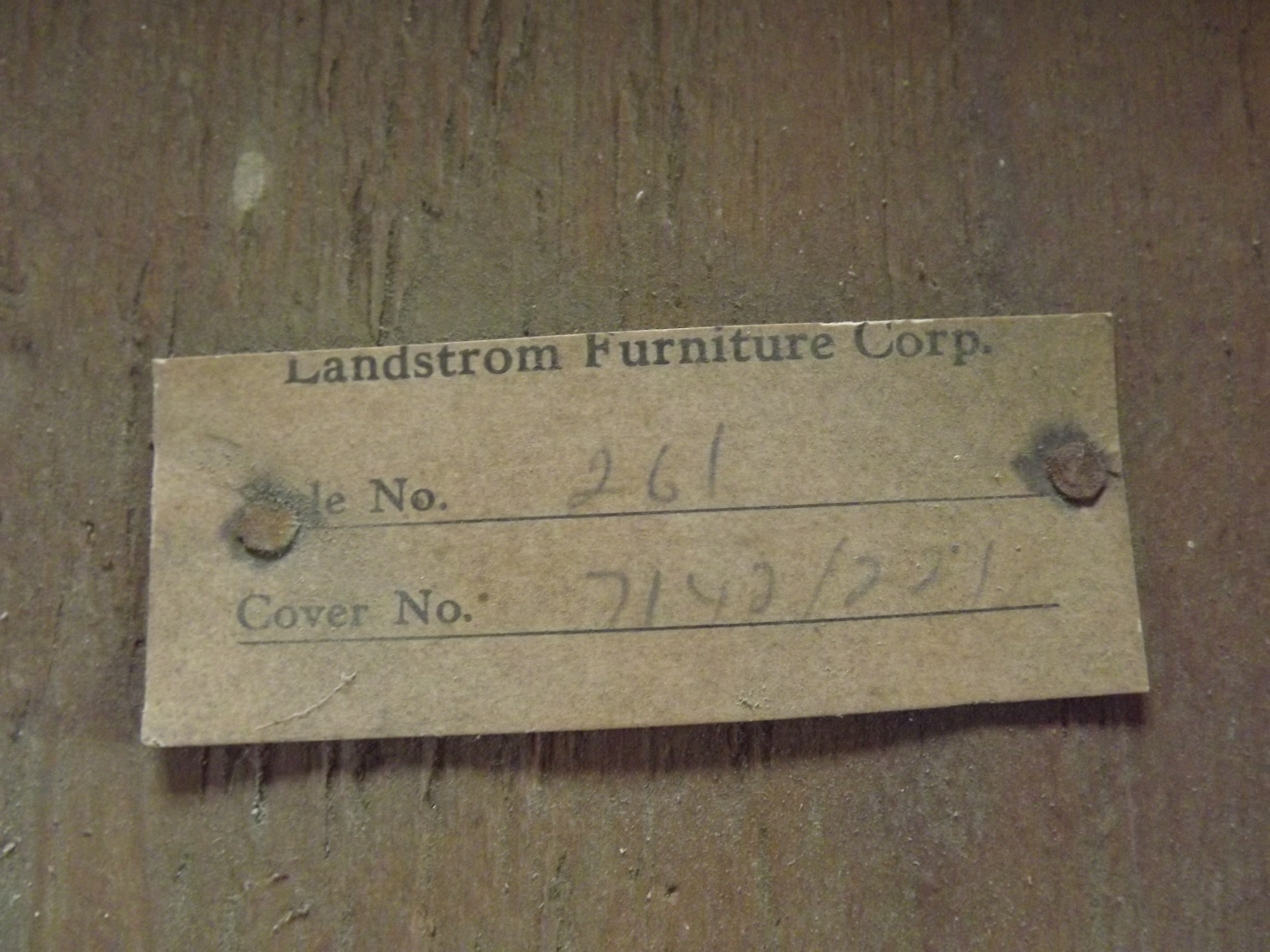 Chair tag Landstrom Furniture Corp. Wood is stamped Sandstone