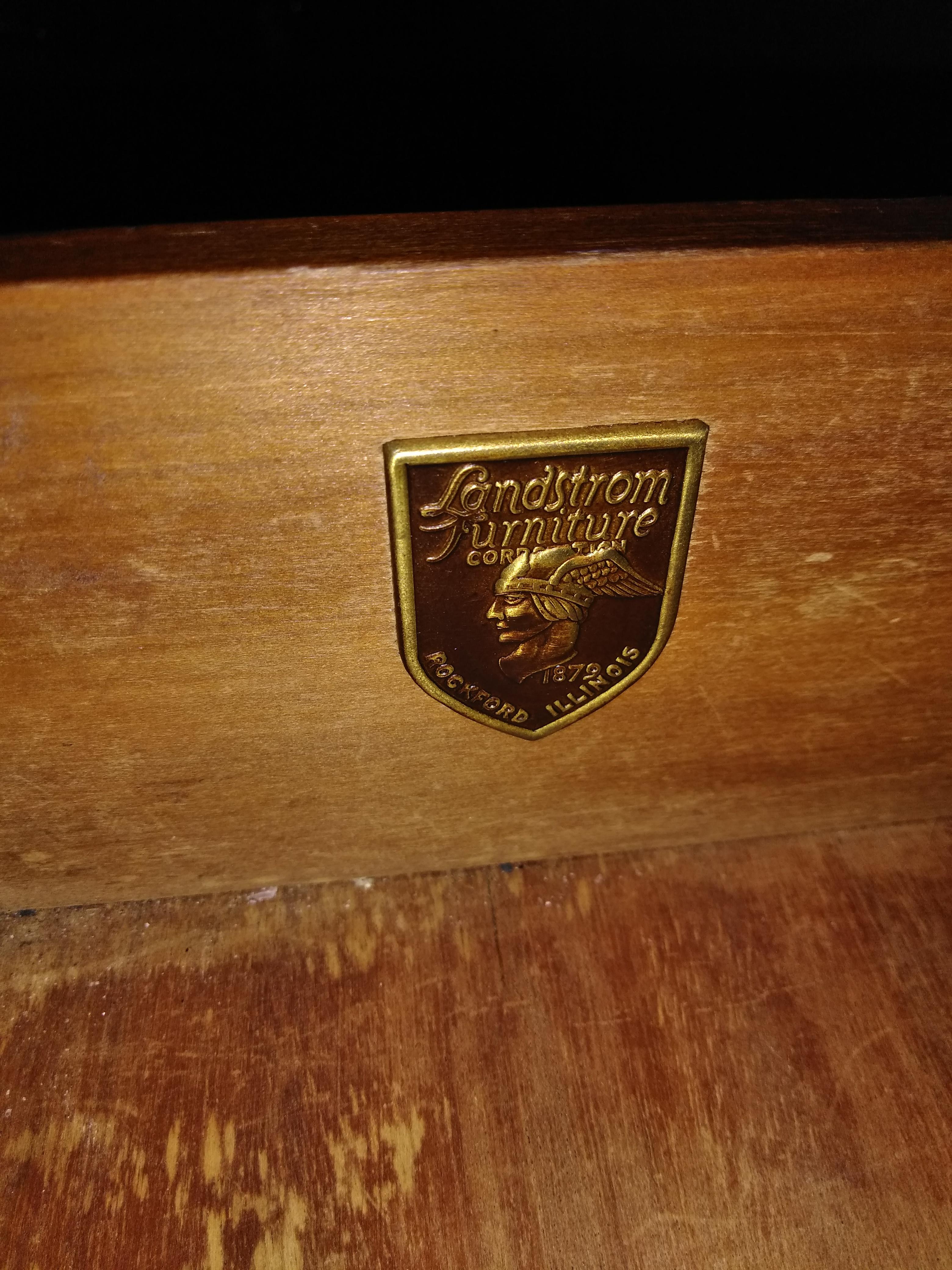 Landstrom Furniture Corp. traced its founding back to 1879 and was in business in Rockford until 1958. During the 1920s, it made furniture in many different revival styles, including Queen Anne, Sheraton and Chippendale. This set dates from the second quarter of the 20th century, furniture of this type last peaked in value back in the 1990's, values and demand for it have declined since that time. Whole bedroom sets now go at auction for under $500.00
