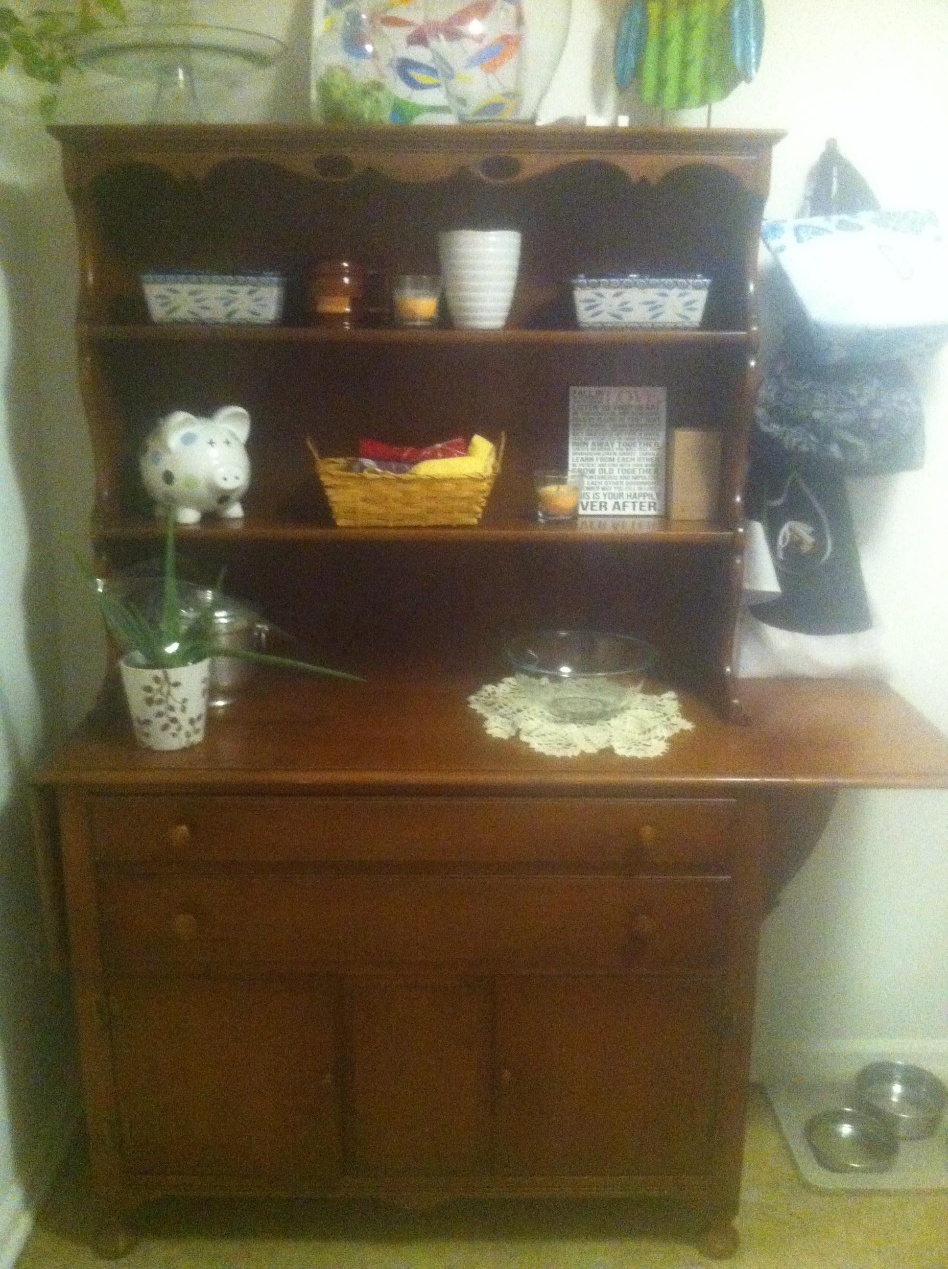 The shelves have plate groves, the top drawer is compartmentalized, and it has wings on either side for extra space. I got it to refinish, but once my husband brought it home, we realized the quality and brand and now I can't do it. I'm thinking about selling it, but right now more interested in learning its history and how much it might be worth. Any insight would be appreciated. Thanks!