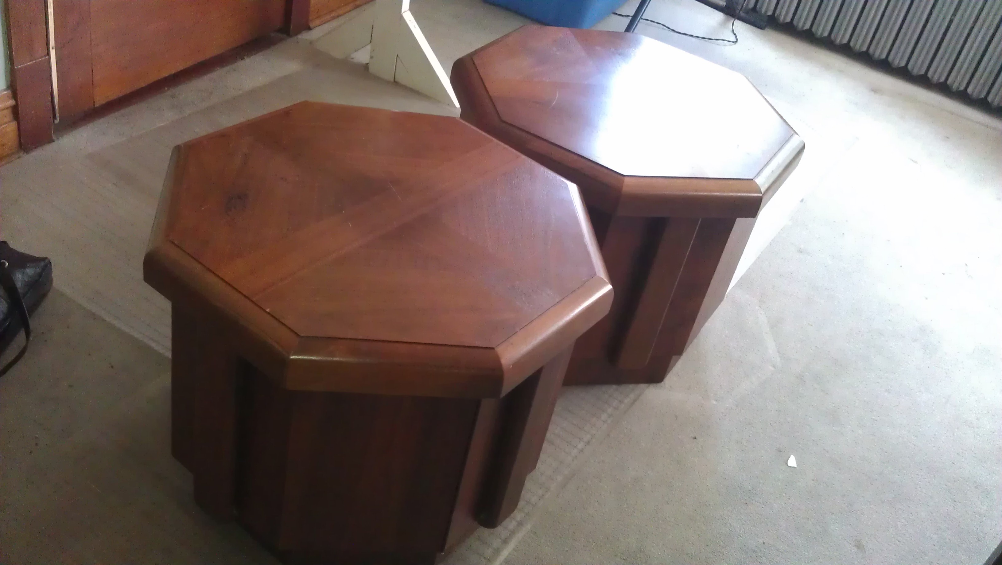 I found two octagonal end tables with storage space. Upon inspection I saw they were by Lane, Altavista Va. I am hoping someone can help me find the value of these table. I don't know much about this item.