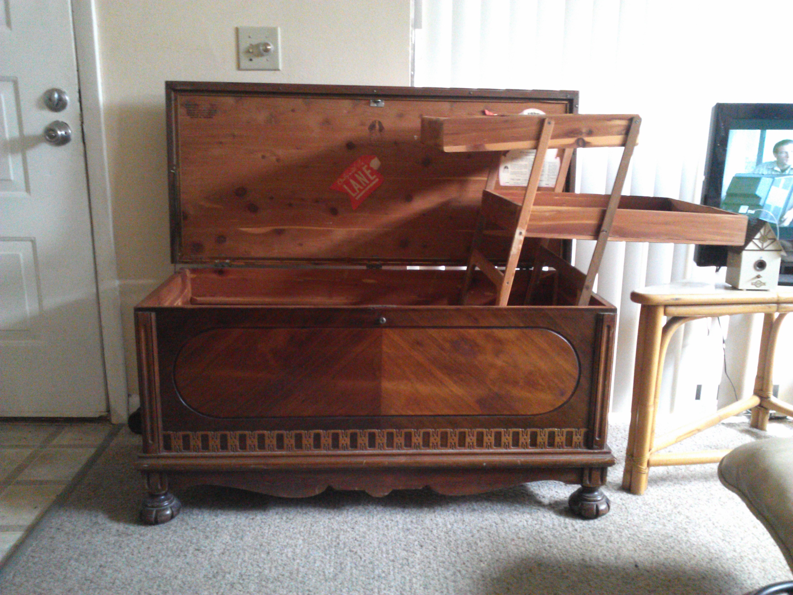 I'm wondering how much my Lane Cedar Chest is worth. I paid $40 for it. The exterior is in good condition. Underneath the chest may have had some water damage, but the interior is still in good condition. I don't have the key, but it unlocks by pushing the button where the key would go. It has some original paperwork in it.