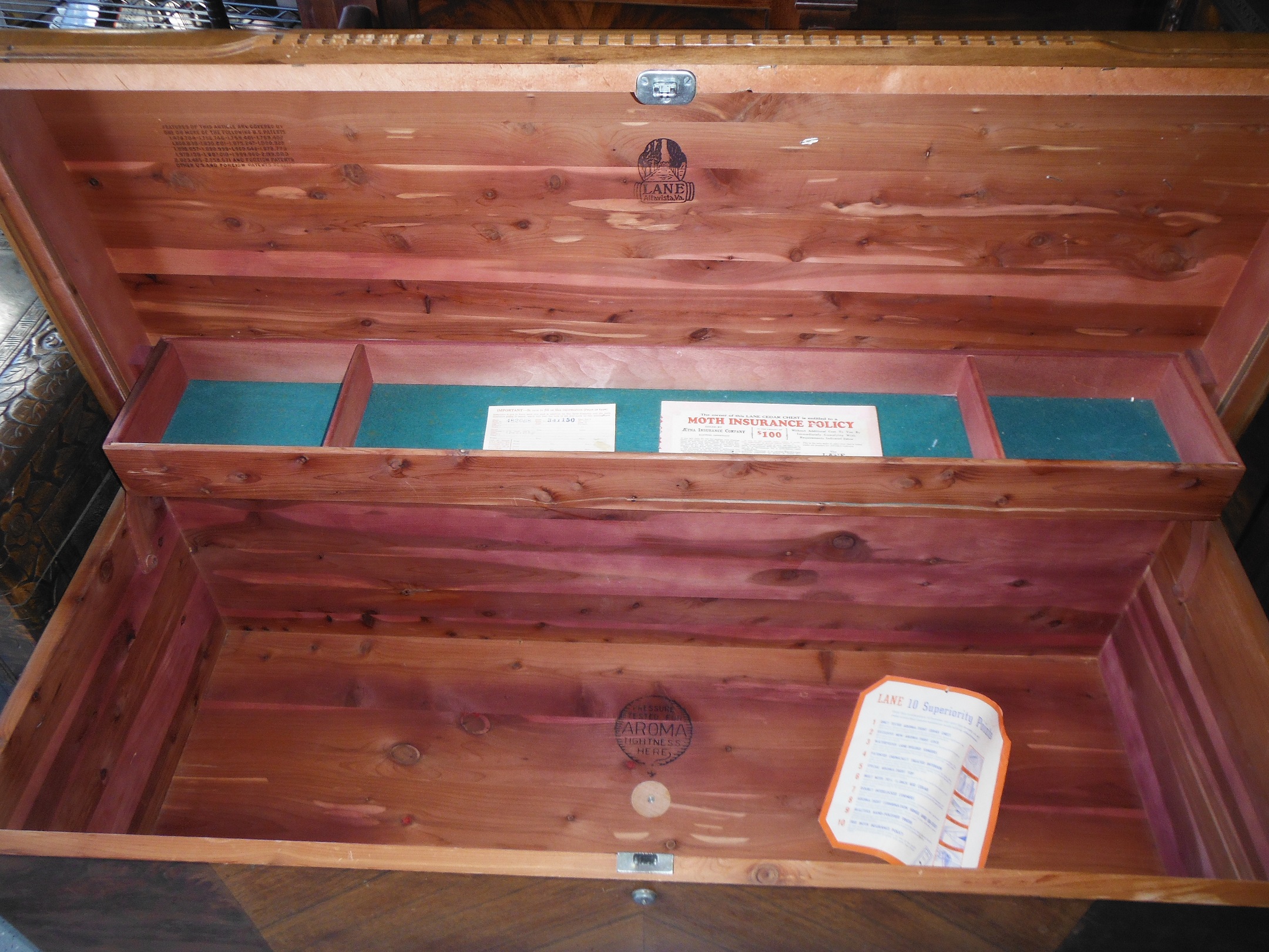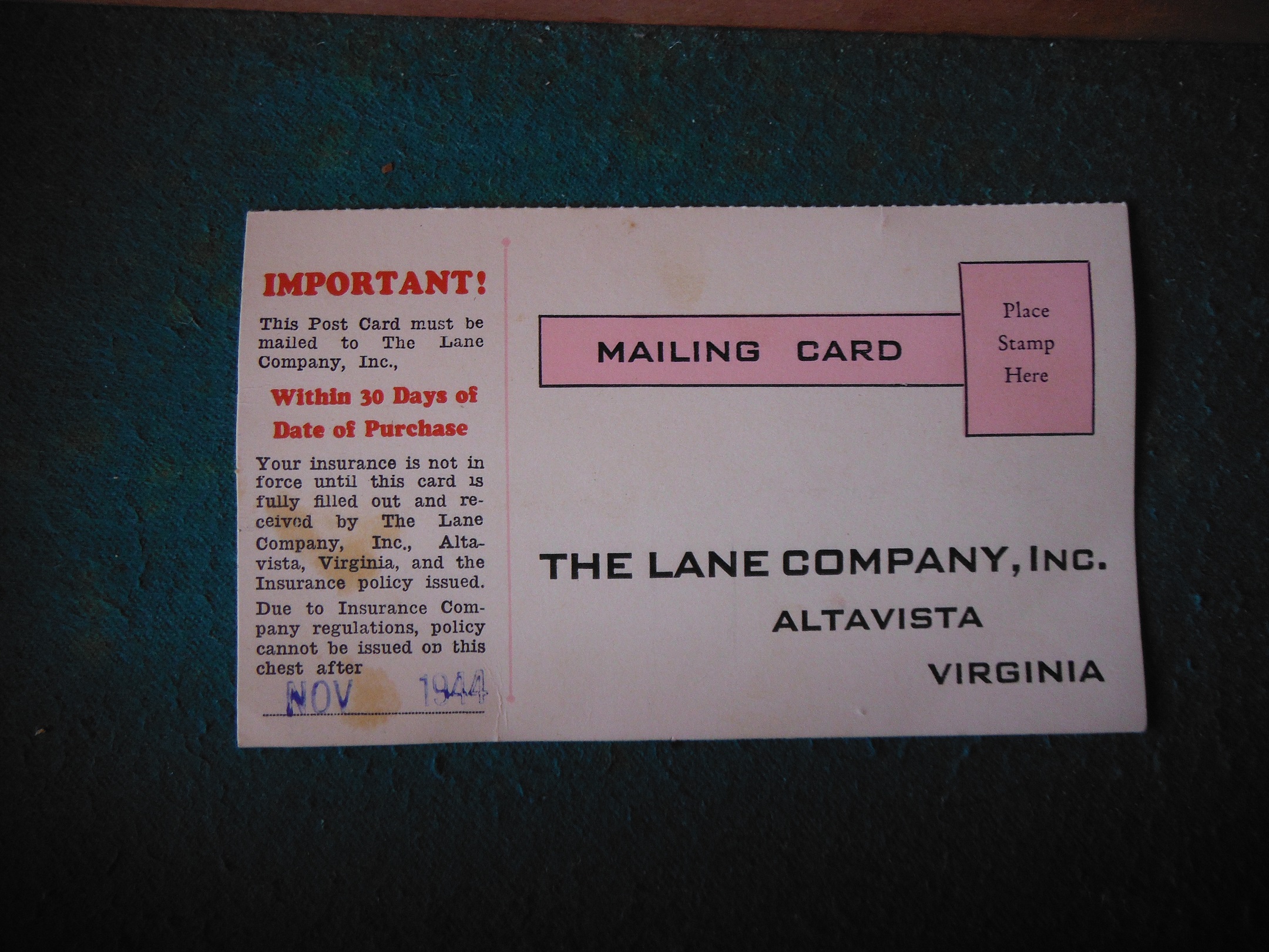 The Lane Company cedar chest with documents stating it was made on 05/11/1943. In pretty good shape considering the age. Still has original locking mechanism but a new one is being sent out.