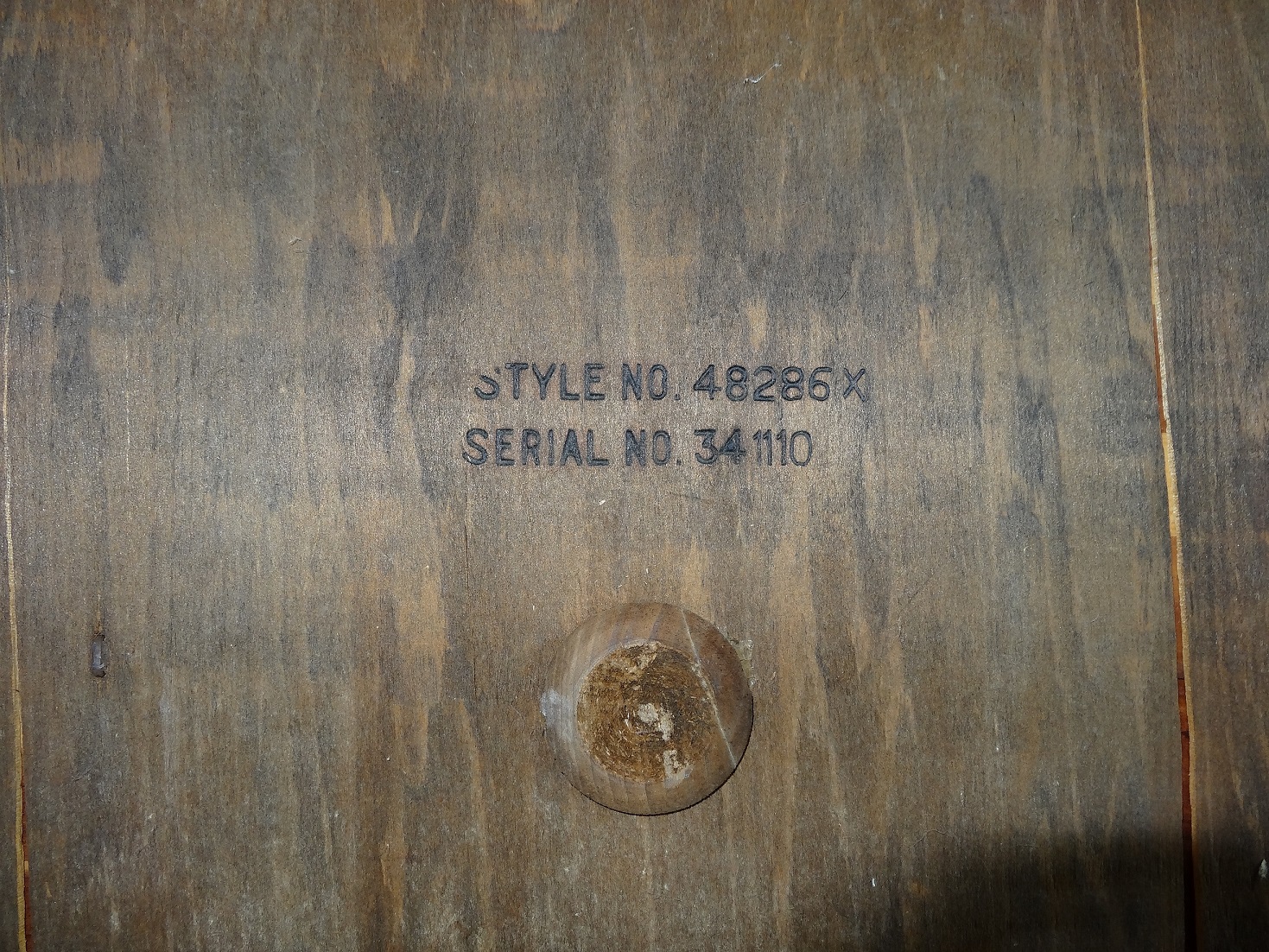 Distinguishing marks Serial and Style Nos. on underside