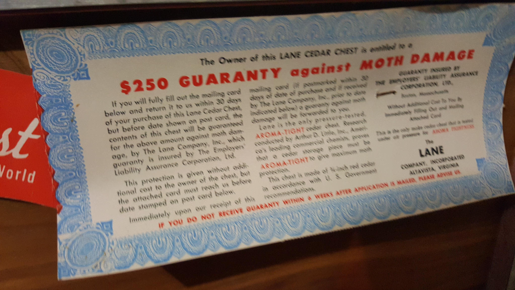 Description Lane cedar chest with no serial or style number. Has a yellow marble color that looks factory made. Lock is the "dangerous" one that pops locked when closed. It has the green felt in the top area. It's in great condition. Passed to me from my grandmother. I would love to know a possible date range and/or value.