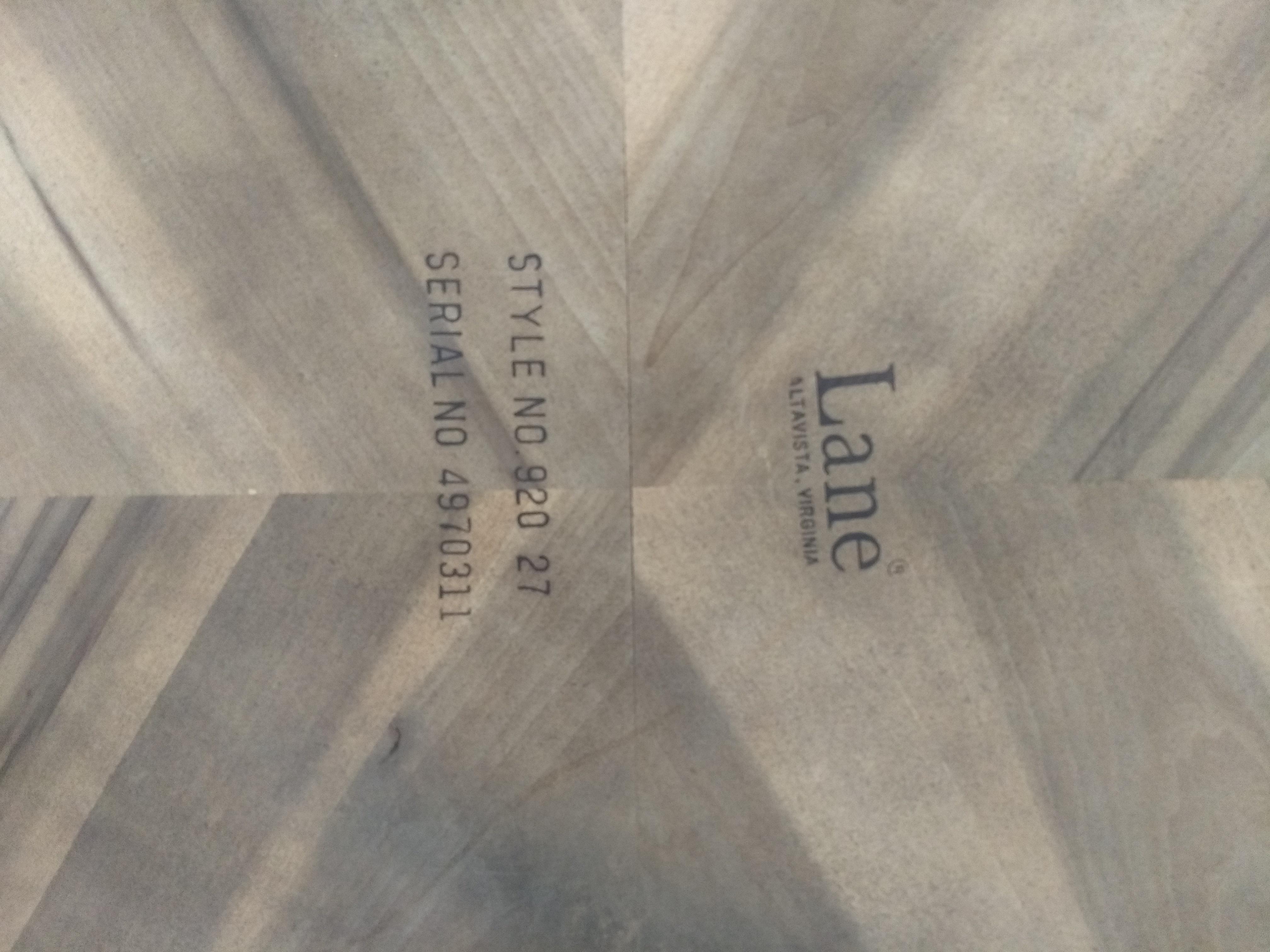 The piece was produced by Lane Furniture, I believe, in 1979. The maker's mark is intact, and lists it as Style No. 920 27 and serial number 4970311.