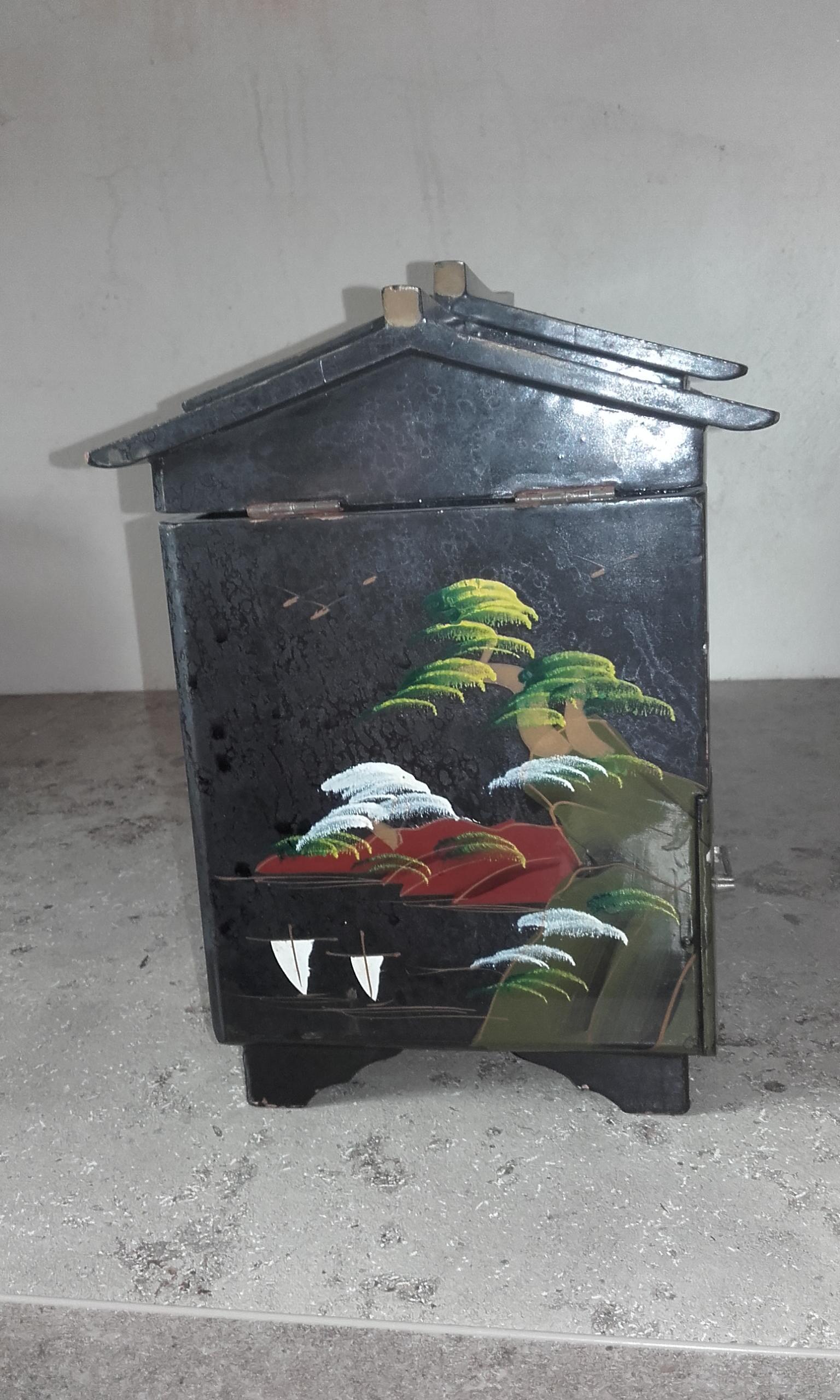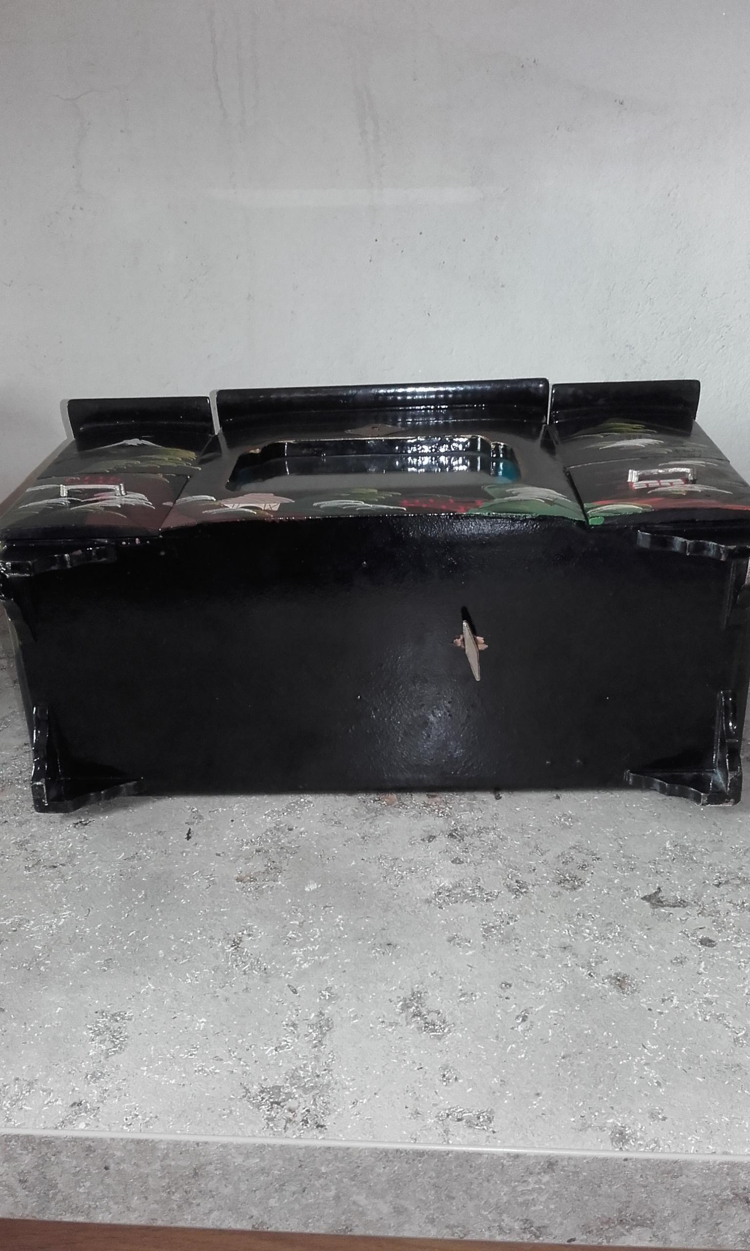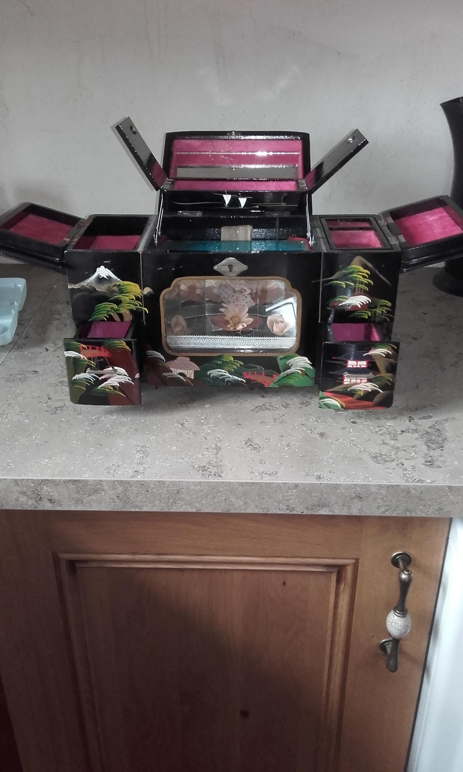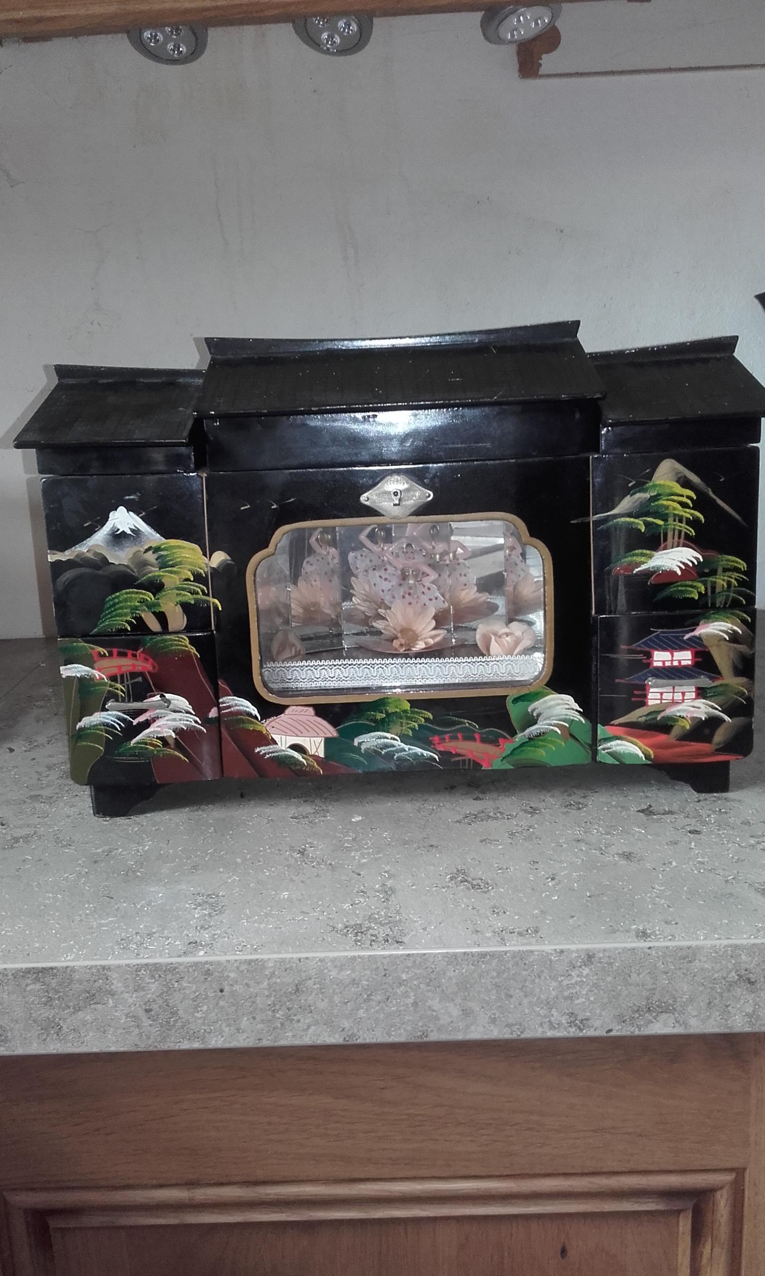 A gift from my grandmother 20 years ago. 5 separate storage areas. I don't know much about it and would appreciate any information or valuation. Thanks