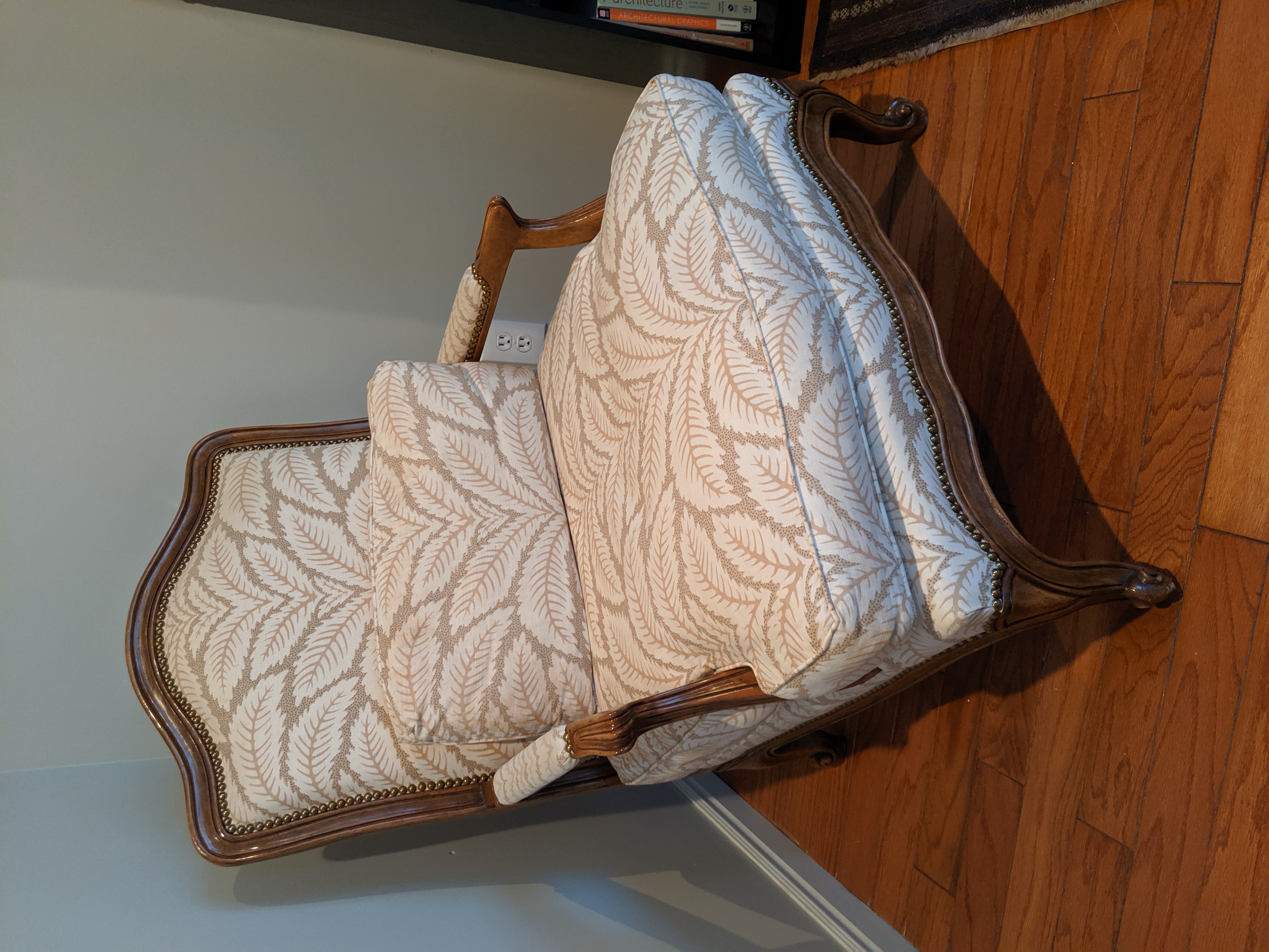 Antique Chair with reupholstered back and seat, and matching pillow.