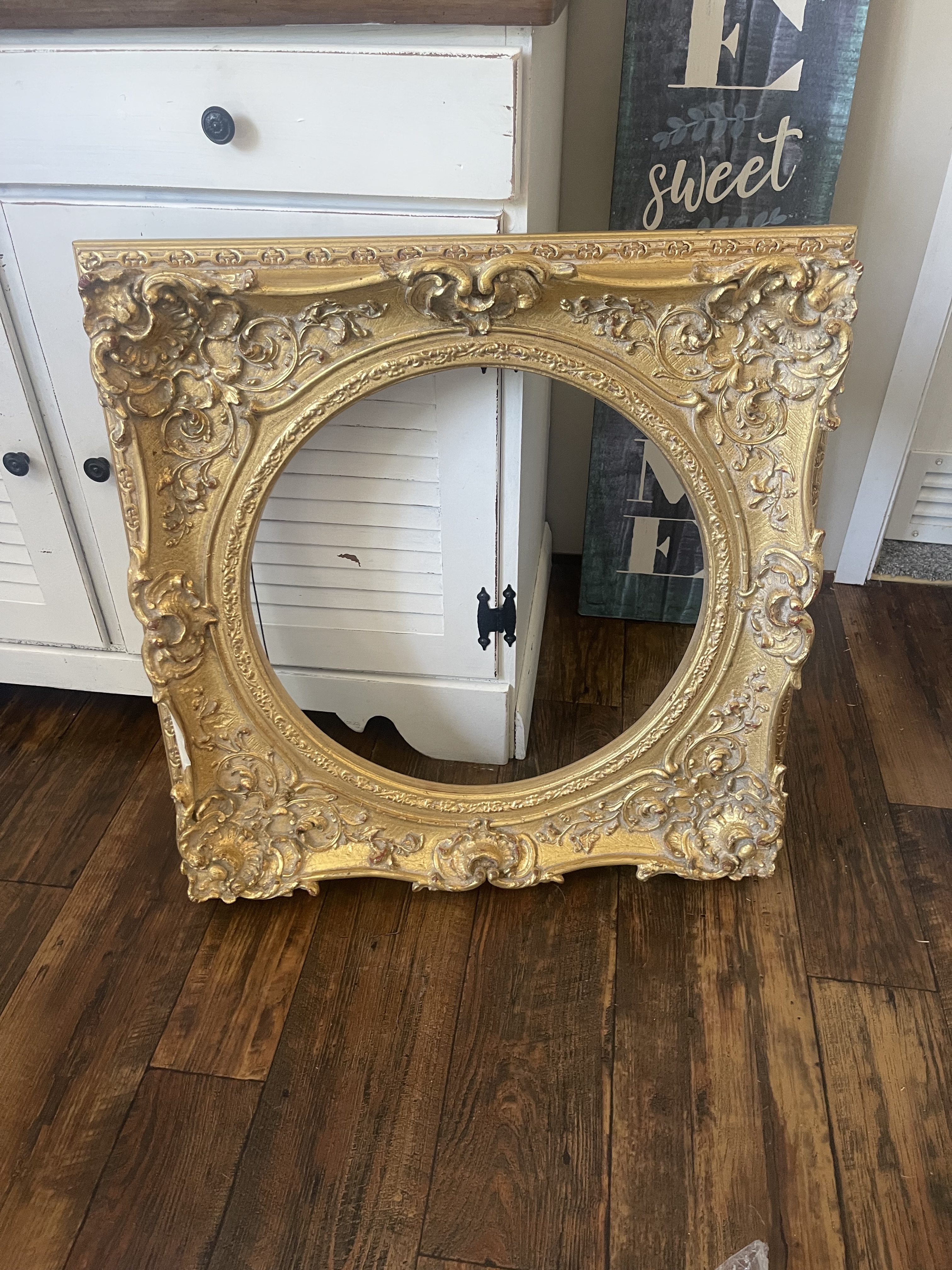 Large Antique Gold Gilded Frame. Dating to c. 19th century. Materials: Wood, Gilding. Estimated value: $55 – $125. Condition: Fair. The market for antique frames is currently moderate, with prices fluctuating based on condition and style. Demand for decorative frames remains steady, particularly among collectors of vintage art and home decor.