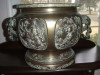 Although your photo shows far too many items on top to get a clear picture, it looks like a rain drum from Asia, bronze. Are the 3 small feet, frogs if you examine them well? If in fact an antique rain drum it could be quite valuable.