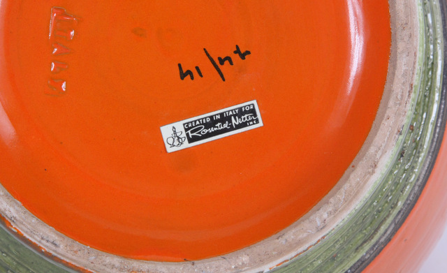 I have seen conflicting reports on the originality of these pieces and this one does not have the Bitossi stamp on bottom just Italy and what looks like 74/14 in black paint or ink.