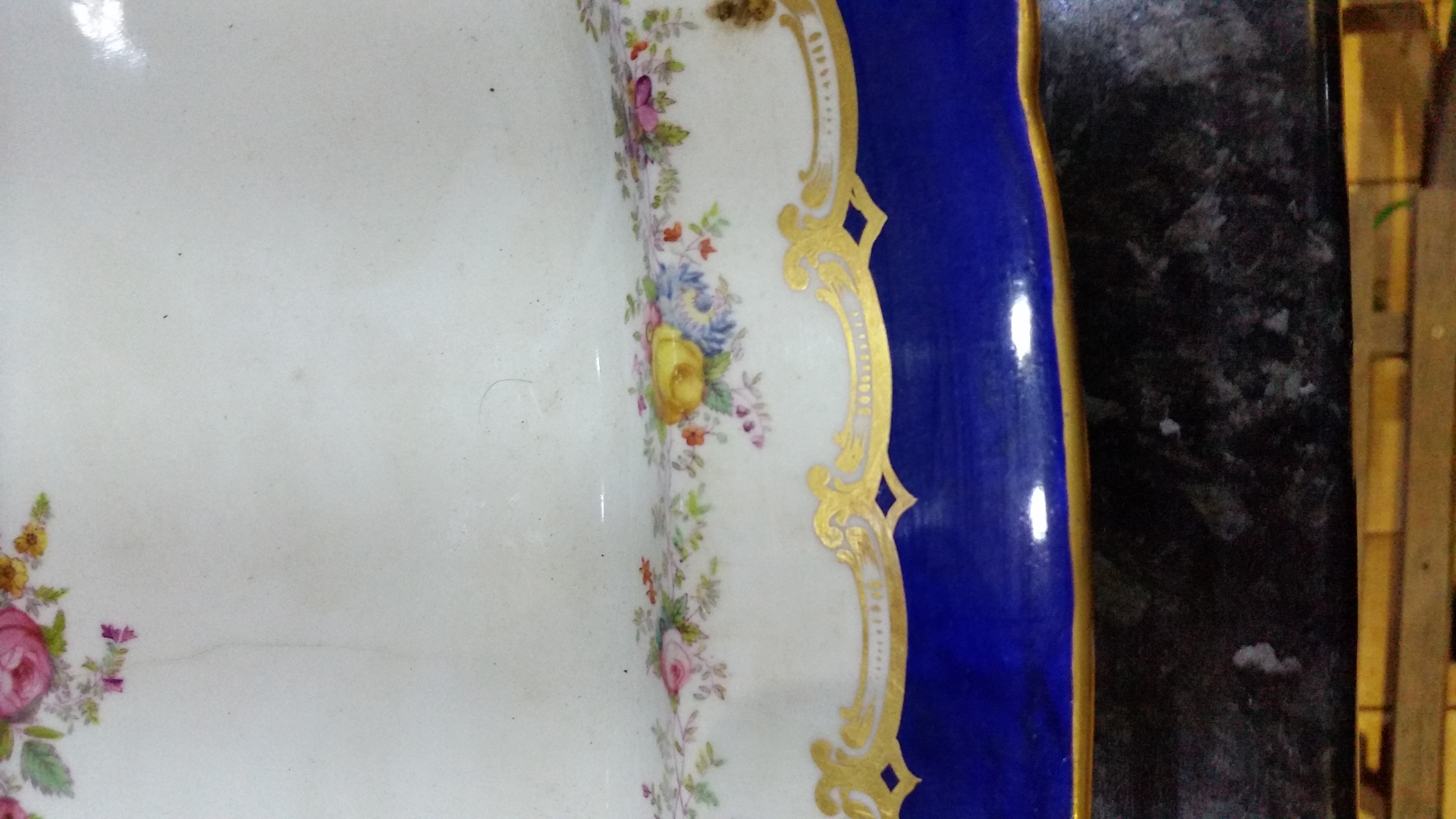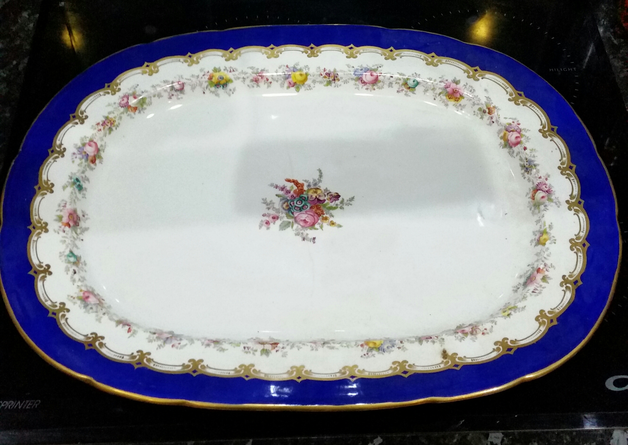 We have this plate we aquired in an estate sale along with lots of other plates etc. I would like to know where it was made and i have thought it was staffordshire or worcester ware. I would like to know its approx period of manufacture and if it has any value. There is a crack but plate still rings when tapped. Please see pictures for condition. Many thanks in advance