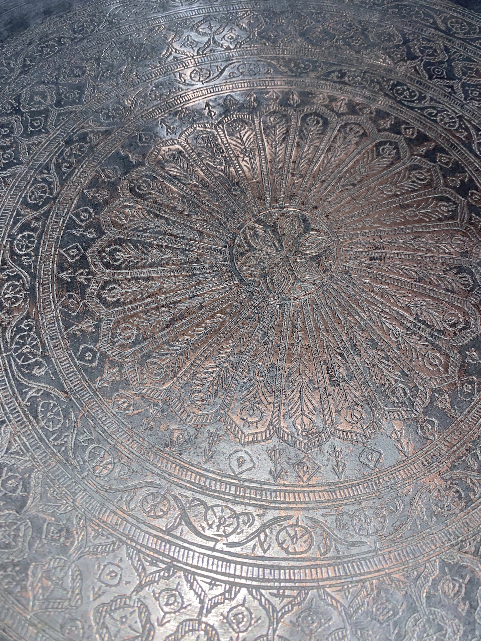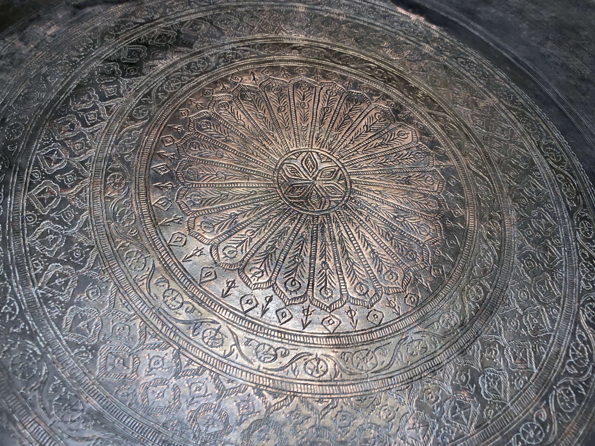 I have a very large, very heavy, hammered, engraved metal tray. 30” diam. with makers mark in Arabic/or Farsi . I inherited it from parents. We got it while overseas in 1974. Looks very old and wasn’t new when purchased. I need a translation of the engraving. I would love to find out if it was made during the Persian empire.
