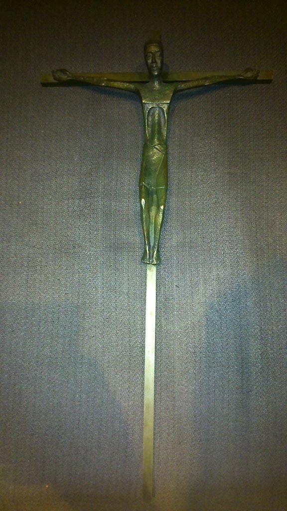 This is a weird looking crucifix with some markings on the back.