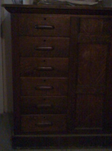 Every drawer has its own lock. There is also a bar inside for hanging clothes. This is an incredibly large piece of furniture that even with drawers removed is extremely heavy.