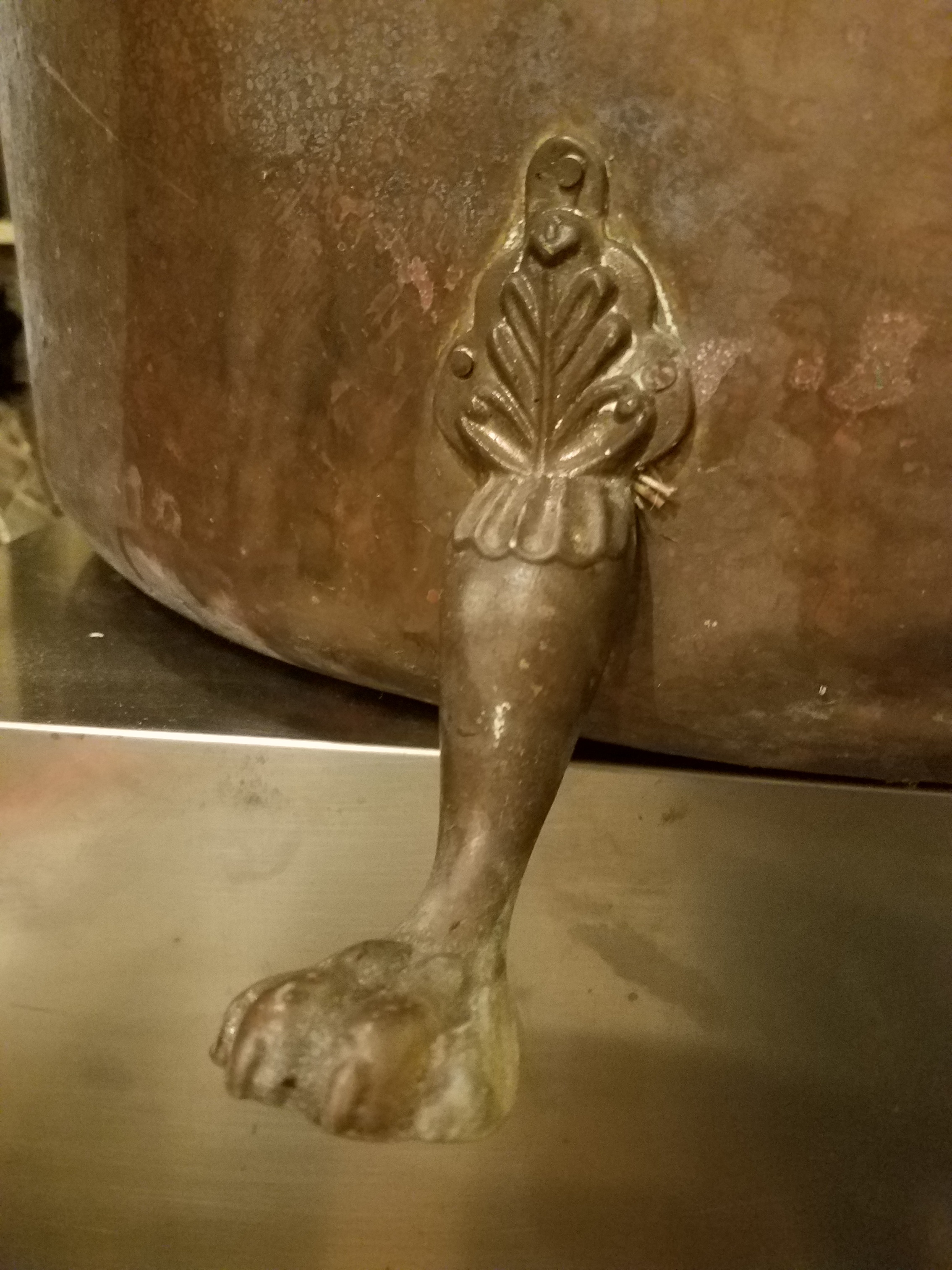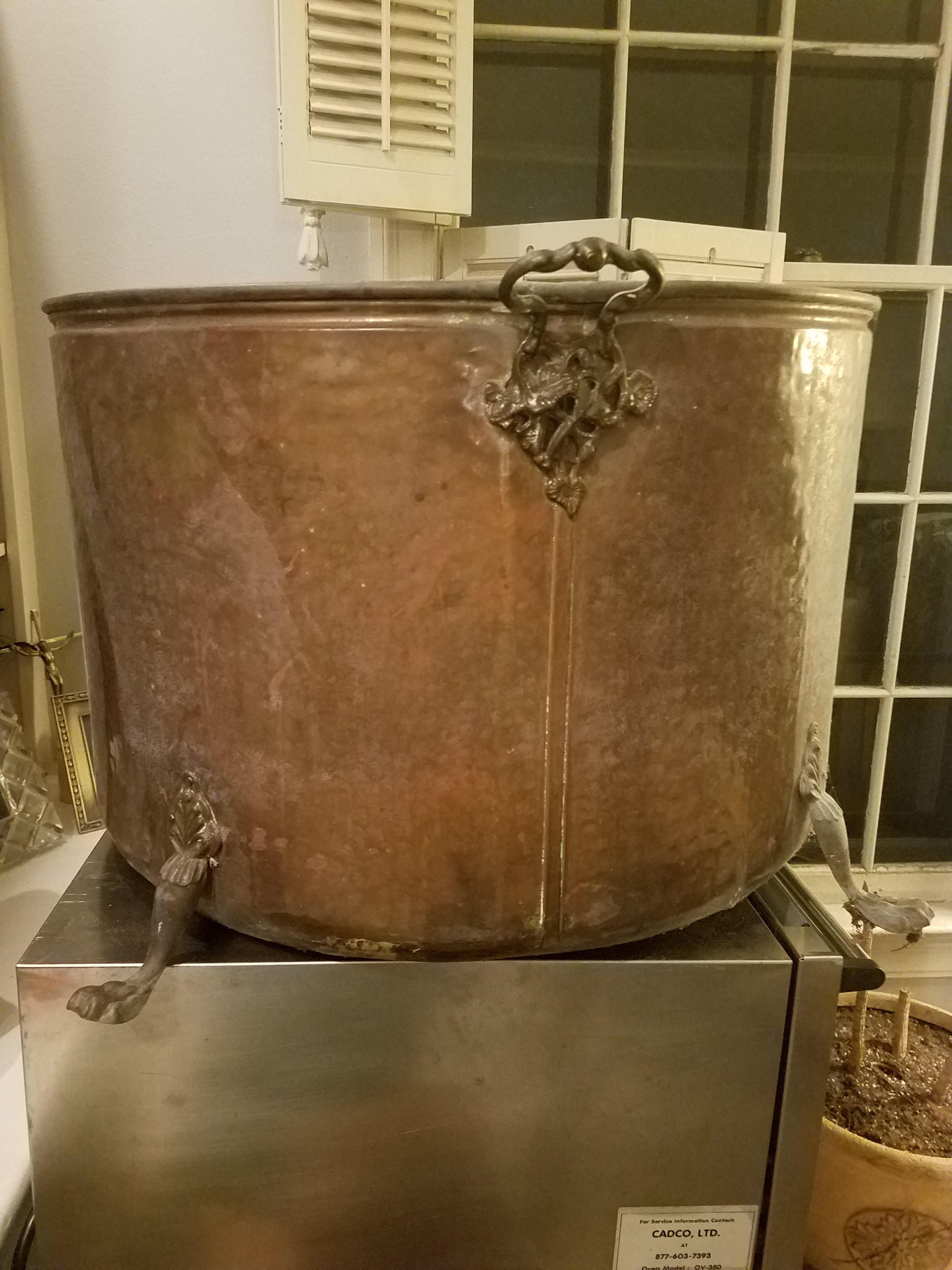Large Copper Pot with Two decorative handles and 4 feet