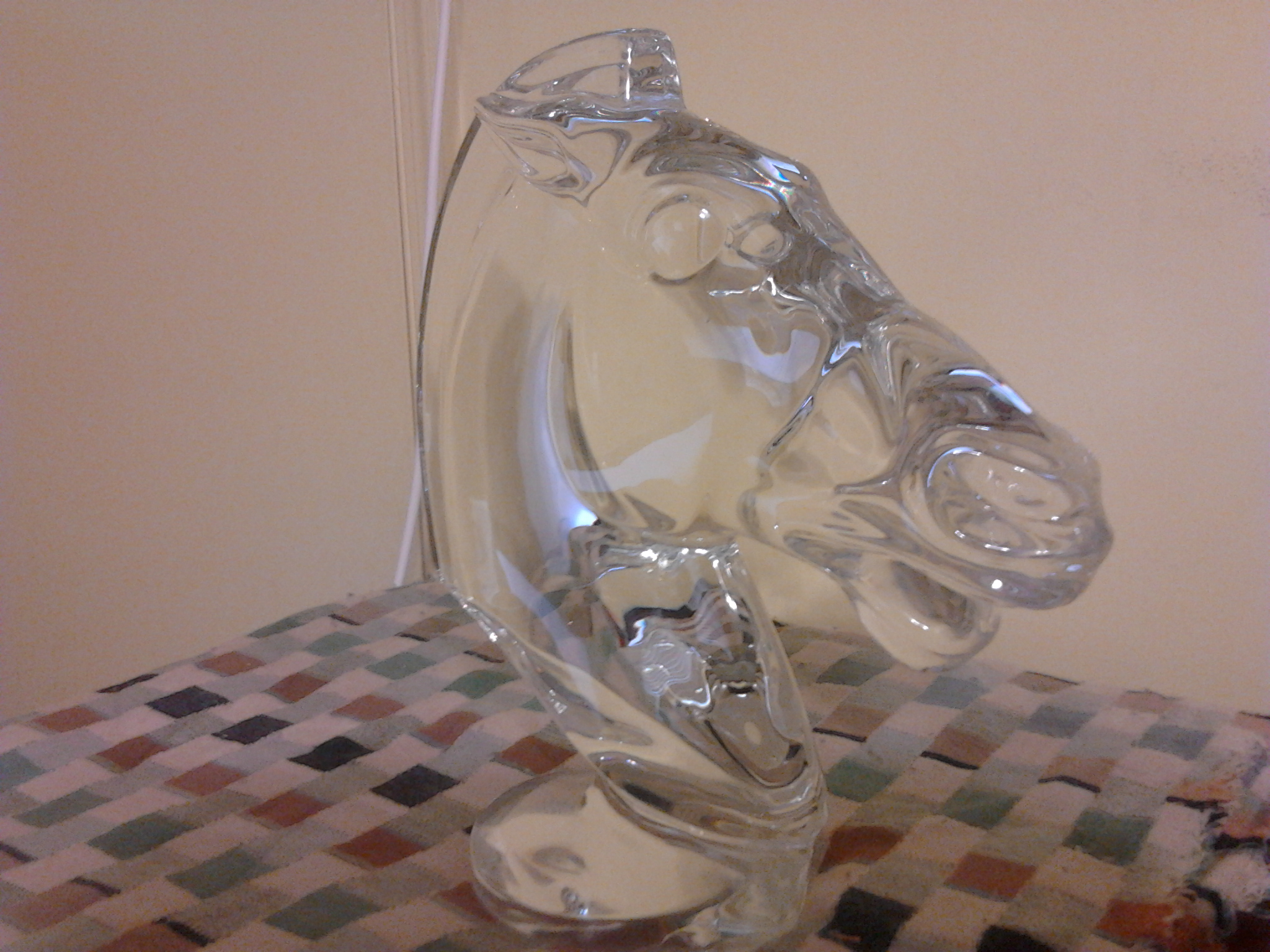 A lovely Sevres Crystal (France) horse head bust. It measures about 11.25" tall x 10.5" wide, and weighs about 12 pounds. The piece is in excellent condition. There is a slight chip on the base/stand edge of the bottom. I may consider selling it.