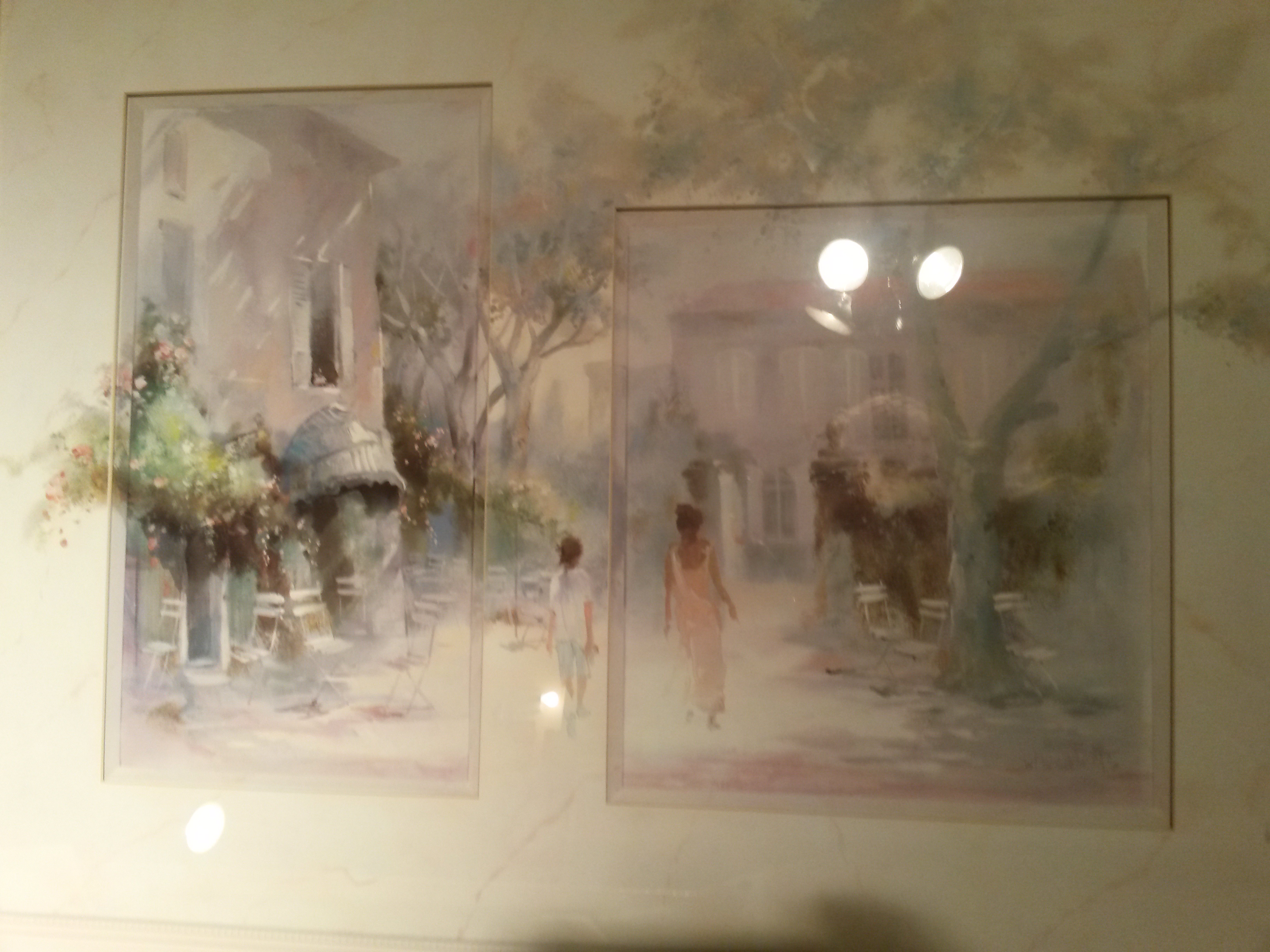 I recently aquired these very large framed prints. I cannot make out the artists signature. 30" x 27" with very unusual matting as the print flows outside the matting. I dont know if theyre watercolors or a print. There is a Kennedy studios sticker on the back and ive tried to contact them for information but havent heard back. Any info on these wld be appreciated. (artist, era, value, ect..)