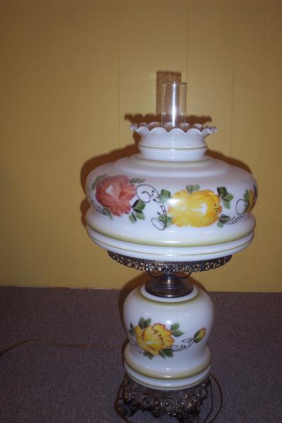 <p>Lamps of this type are decorator pieces, most made after the release of the movie " Gone with the Wind". They have been in almost continual production since before World War Two. Values for them are quite modest, oftewn less than $50.00 at auction</p><p> </p><p>Lovejoy </p>