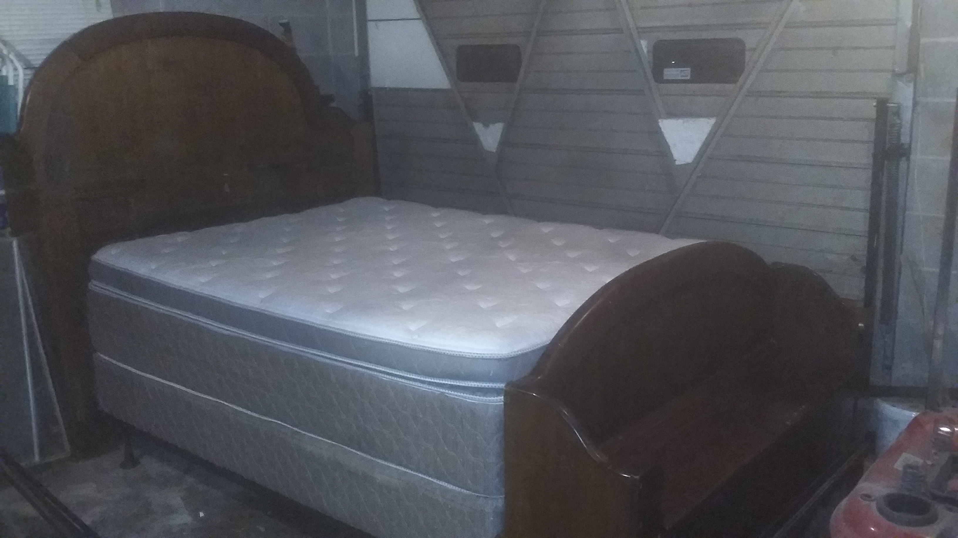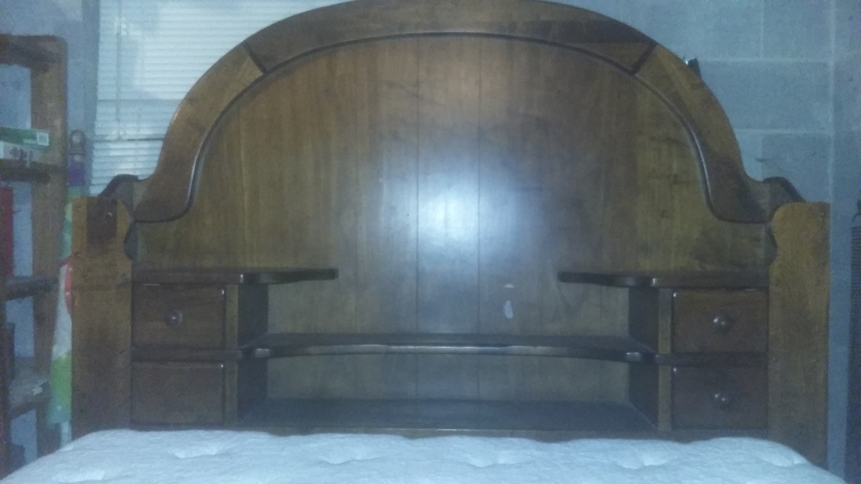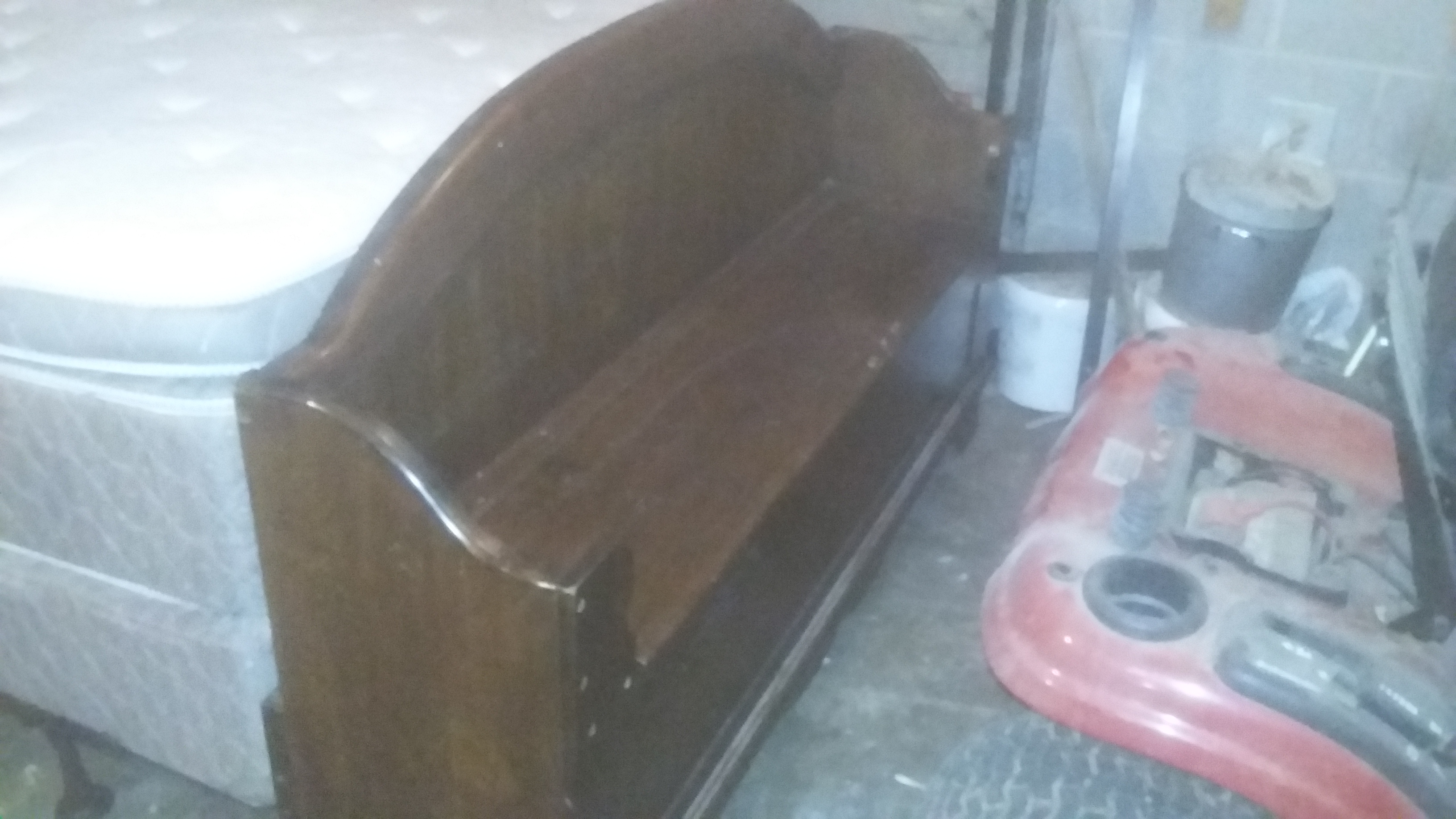 This is a very large and heavy piece . Headboard is around 200lbs bench 100lbs .Bench opens with storage underneath . Was about to start refinishing but thought i better make sure its nothing special. Any info would be appreciated . Thanks