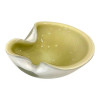 Two large hand blown doves bolted to a gold branch connected to a smokey glass base.
