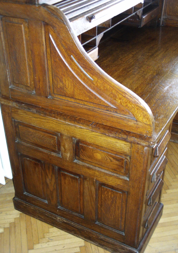 Apologies for a roll-top post but I'm simply not knowledgable enough to discern the differences with others in the archives. It belonged to my grandfather who was an insurance agent in Istanbul, Turkey, and must have bought the desk sometime before 1930's. Please help me out with any tips about period, maker company and value!