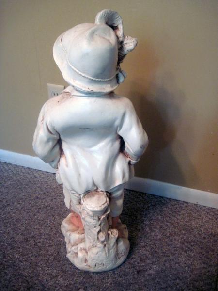 If anyone has ever seen anything like this before please let us know, or even if they can identify the style of dress the boy is in. The only I dentifying mark we can find is mexico carved into the stump of the tree. The entire thing is hollow and has a slit on the back of the boy to put money in. The lady that gave us this stated that it was in her grandmothers house ever since she was a child. So I am guesing this weas made in the 40's but I could be way off.