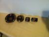 This brooch is large (3" x 2") and weighs 51 grams. Features a cenral oval shaped porcelain plaque with what appears to be a "transfer" painted courting couple minuature signed "Boucher" in script at the bottom. Ornate gold plated open-metalwork frame with a silver colored base metal. I tested the base metal using acids and a touchstore, and the streak did not change when exposed to 14k and Platinum acids. However; I tested another vintage "pot metal" piece and obtained similar results, which is very strange...Anyways, the finding is a one-piece saftey pin that was applied to the backside. I cannot tell if it is original to the piece. This style of pin was patented in the 1940's, I believe. There are no hallmarks whatsoever on the metal, and the only identifiable marking is the Boucher script on the poreclain plaque. The painting appears to be reminiscent of Francios Boucher, which leads me to belive this piece was not created by Marcel Boucher, the well-known Vintage jewelry designer. This piece is in excellent condition - only a approx 1mm sized area on the side of the pin where the plating has worn away. I would appreciate some feedback on this piece, as I have been researching it for a long time and just cannot seem to identify the date of manufacure, material composotion or designer. I would like to list this piece for sale in my Ebay store (Nikki's Estate Jewelry Boutique), but I do not feel comfortable selling items that I am unable to authenticate, and I cannot seem to figure this mystery out on my own. Thanks so much!