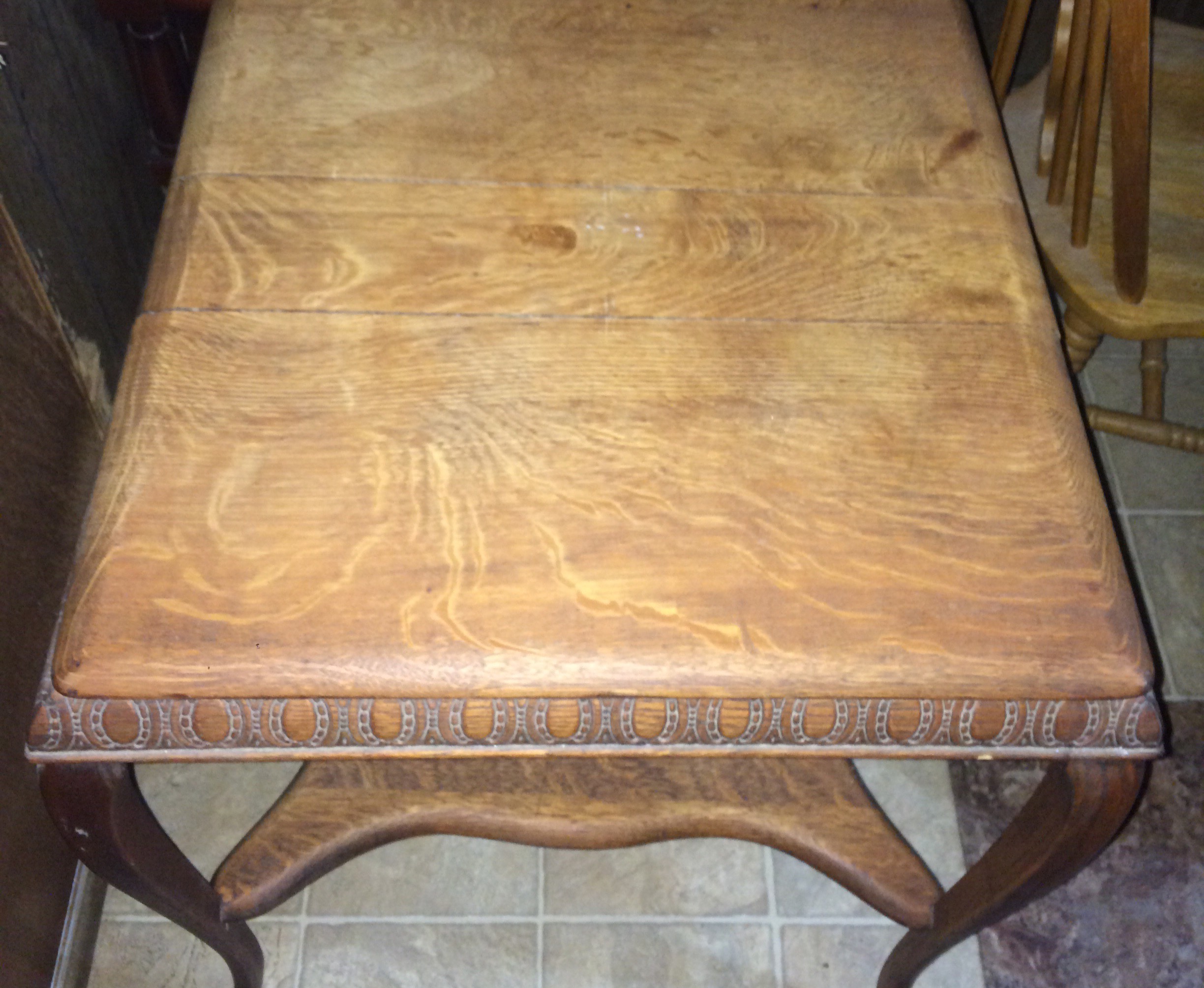 This table was given to me by my parents. I had no idea how old it is until I found a sticker underneath that says B.J. co Jamestown N.Y.