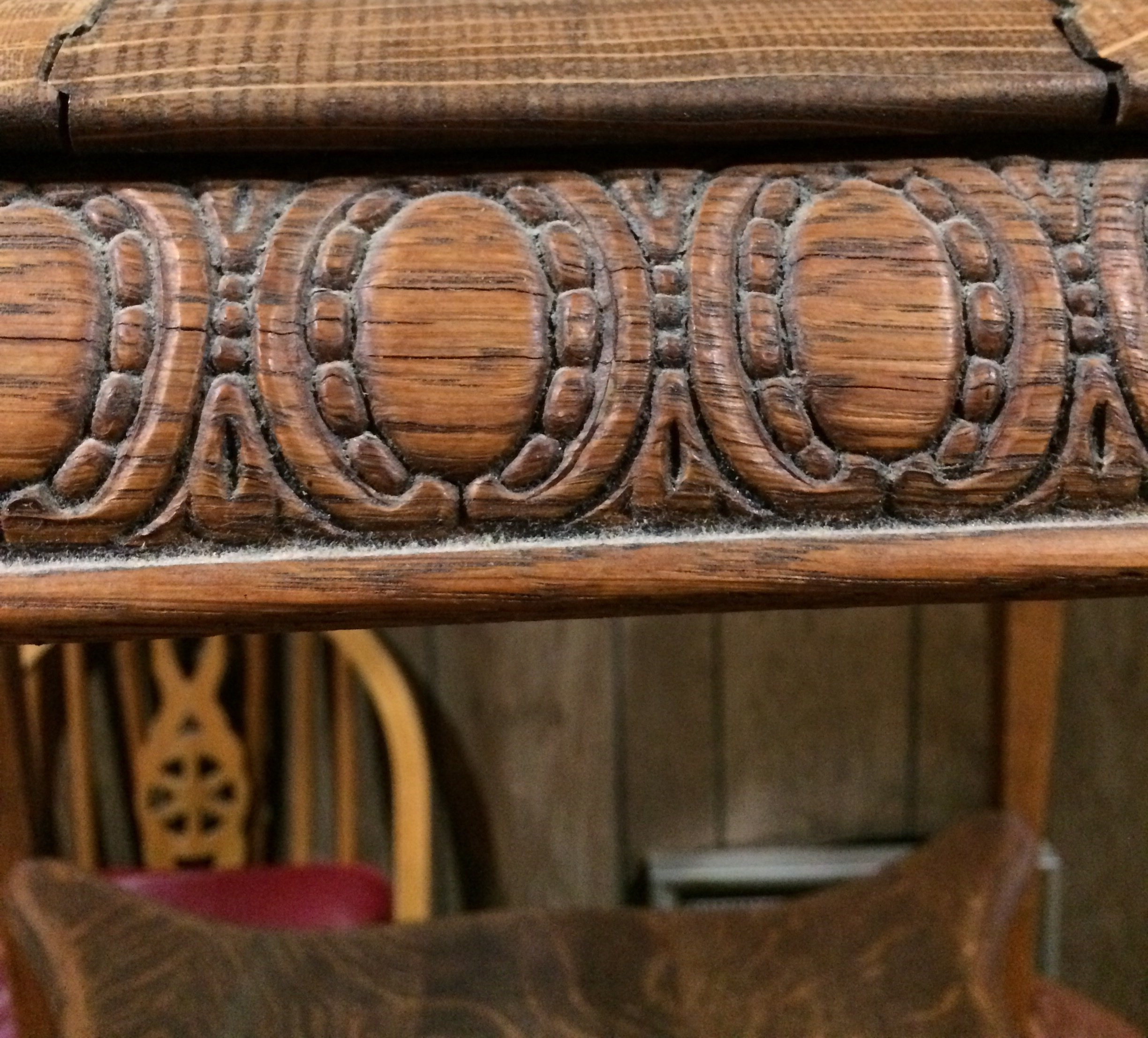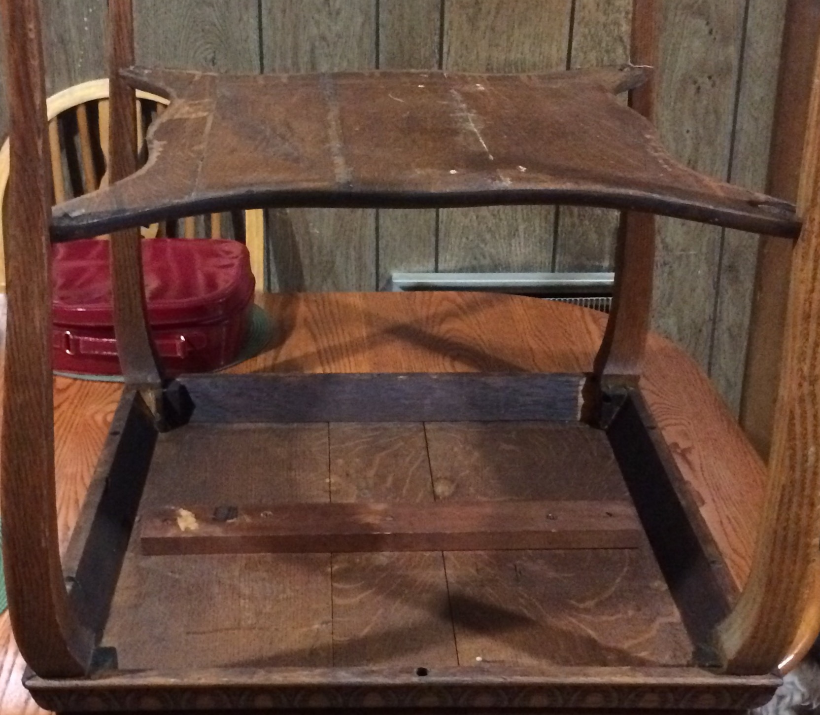 It has the original finish and no major scuffs or marks. Very sturdy.