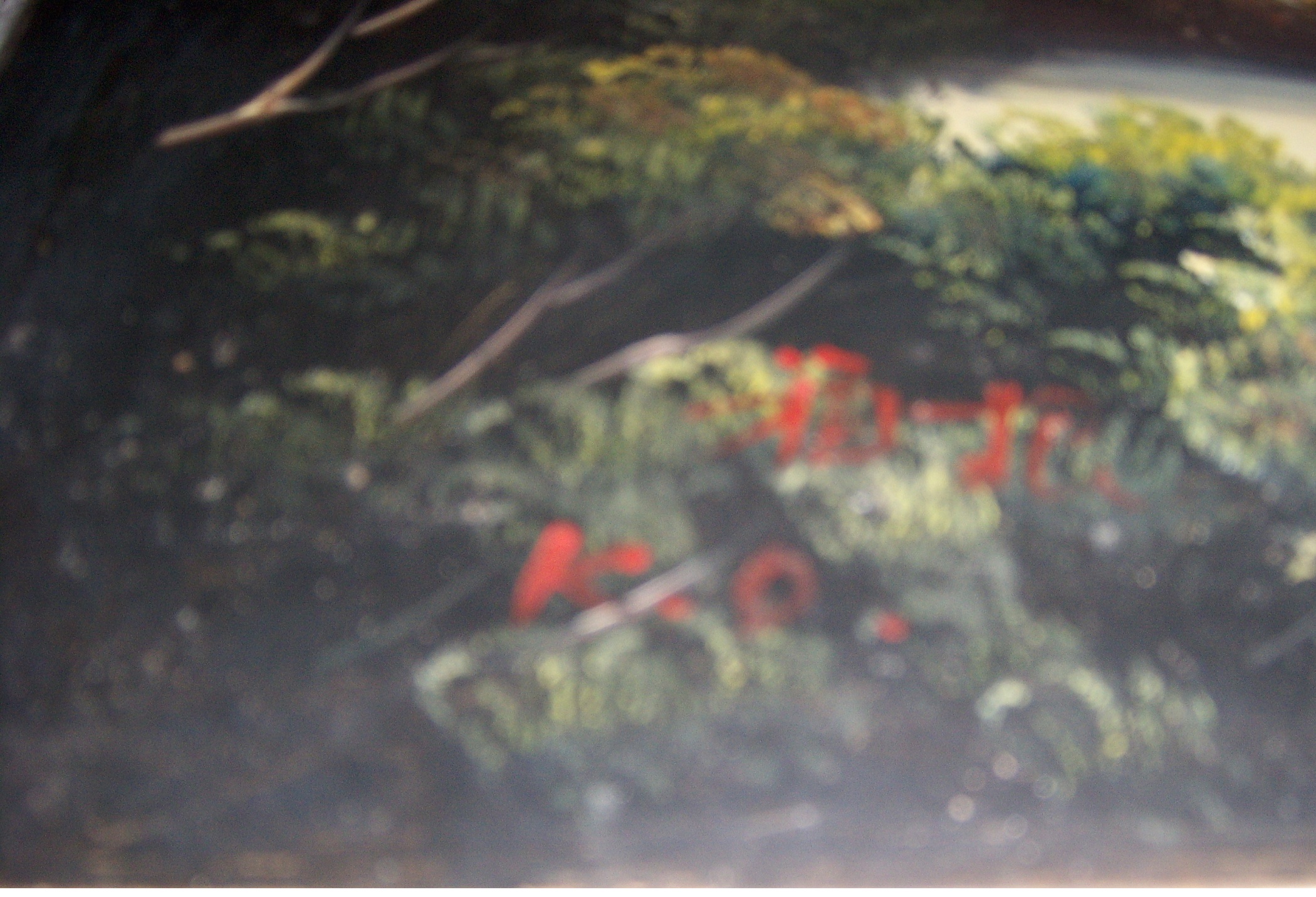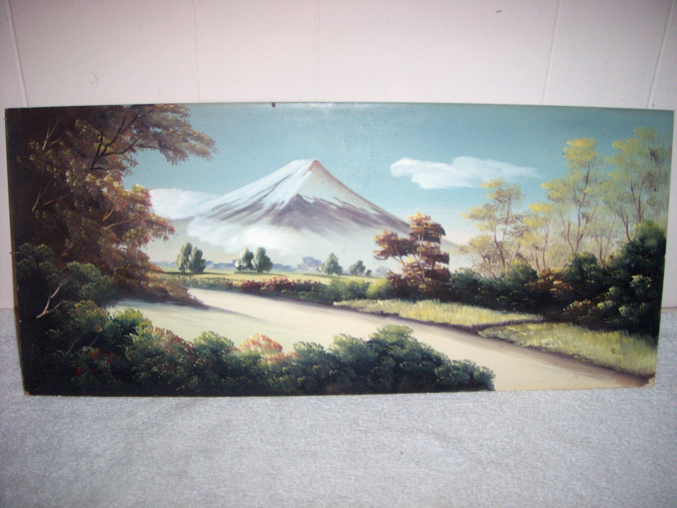 This painting was acquired by my grandfather while stationed in Japan, after WWII. Where he was told it was painted by a Mr. Kenzo Okada in the late 1920's while Mr. Okada attended the Tokyo School of Fine Arts. The painting is 10 1/2 x 24 inches in size,in very good condition. It shows age discoloration on back only. And has a small triangle shaped craked at left edge that is only visiable from back side. It is an original oil painting. It is also housed in a ceramic egded wooden frame, the ceramic designs are crumbling off due too age. I am looking to sell this painting but have no idea of it's collectors value.