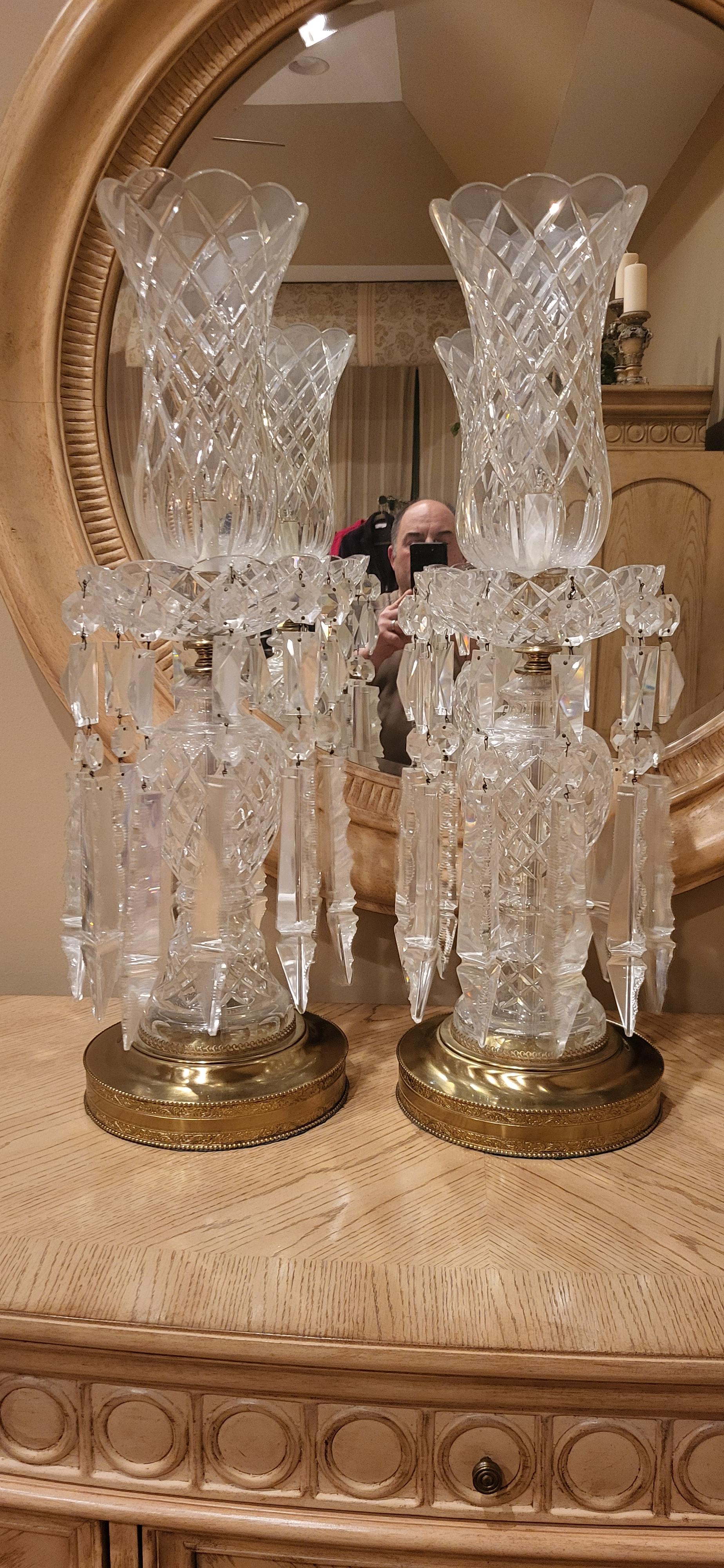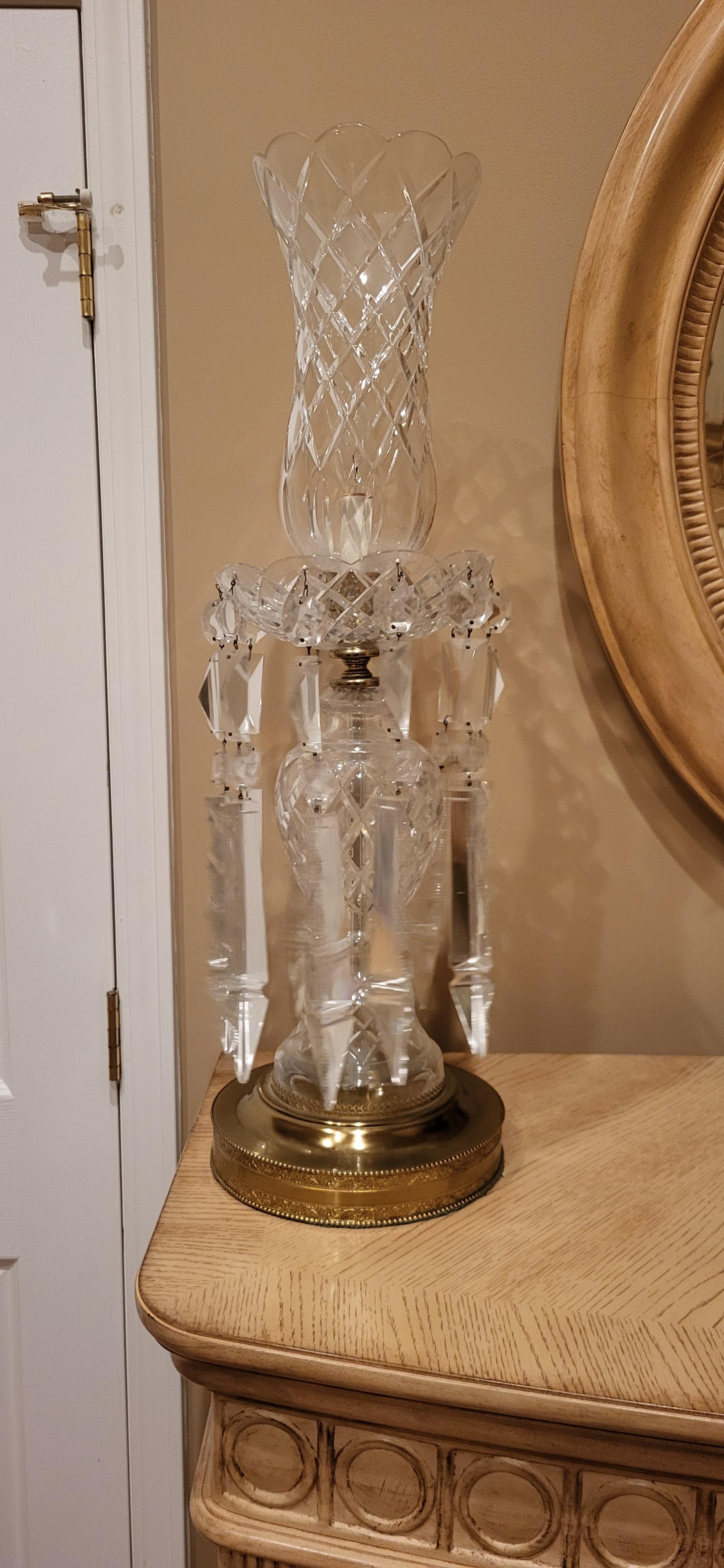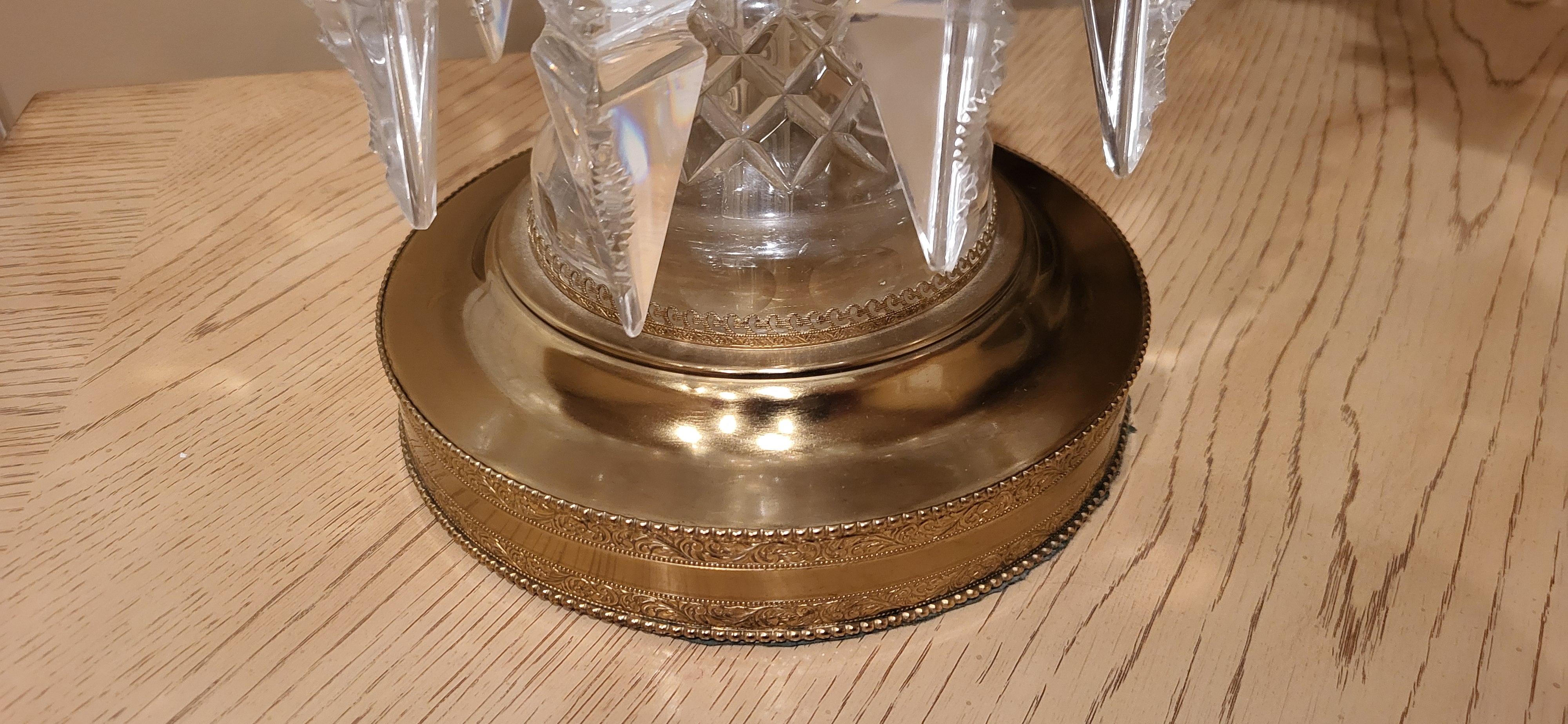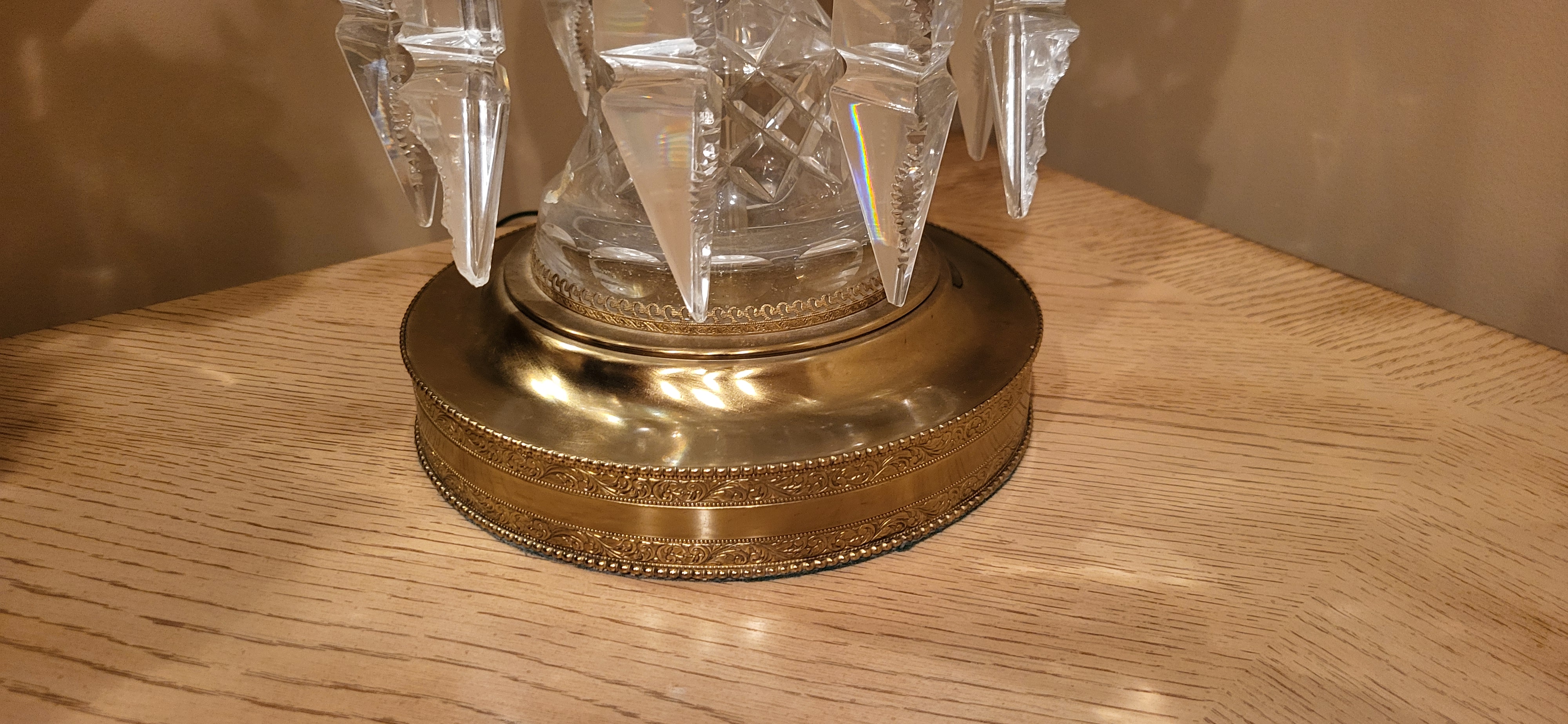 - Each lamp has ten 14 inch hanging crystal prisms arranged around the lamp