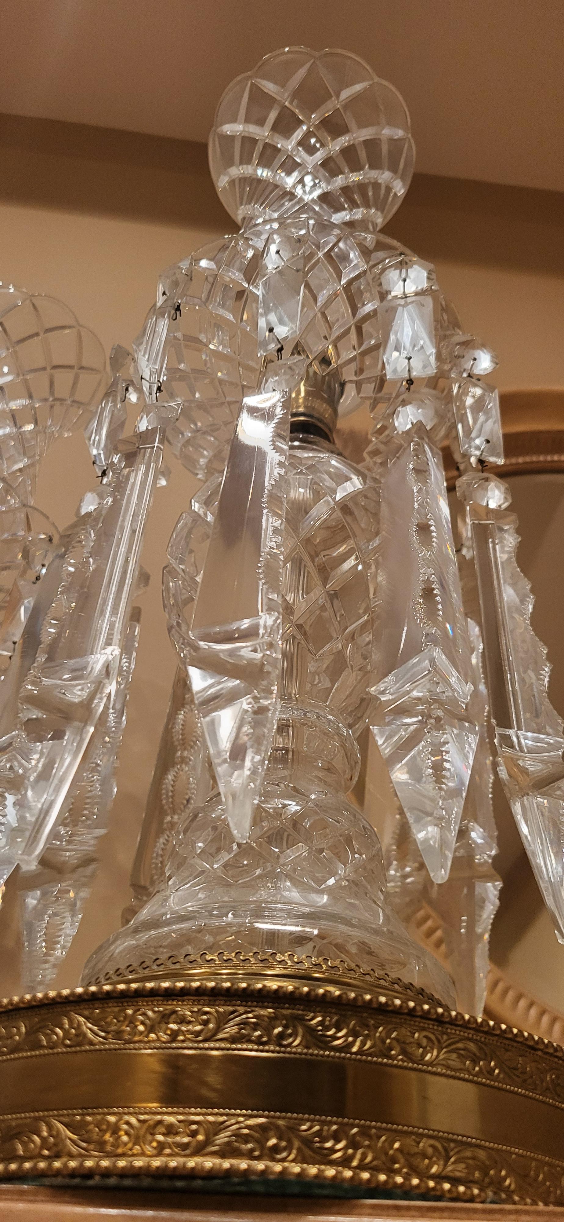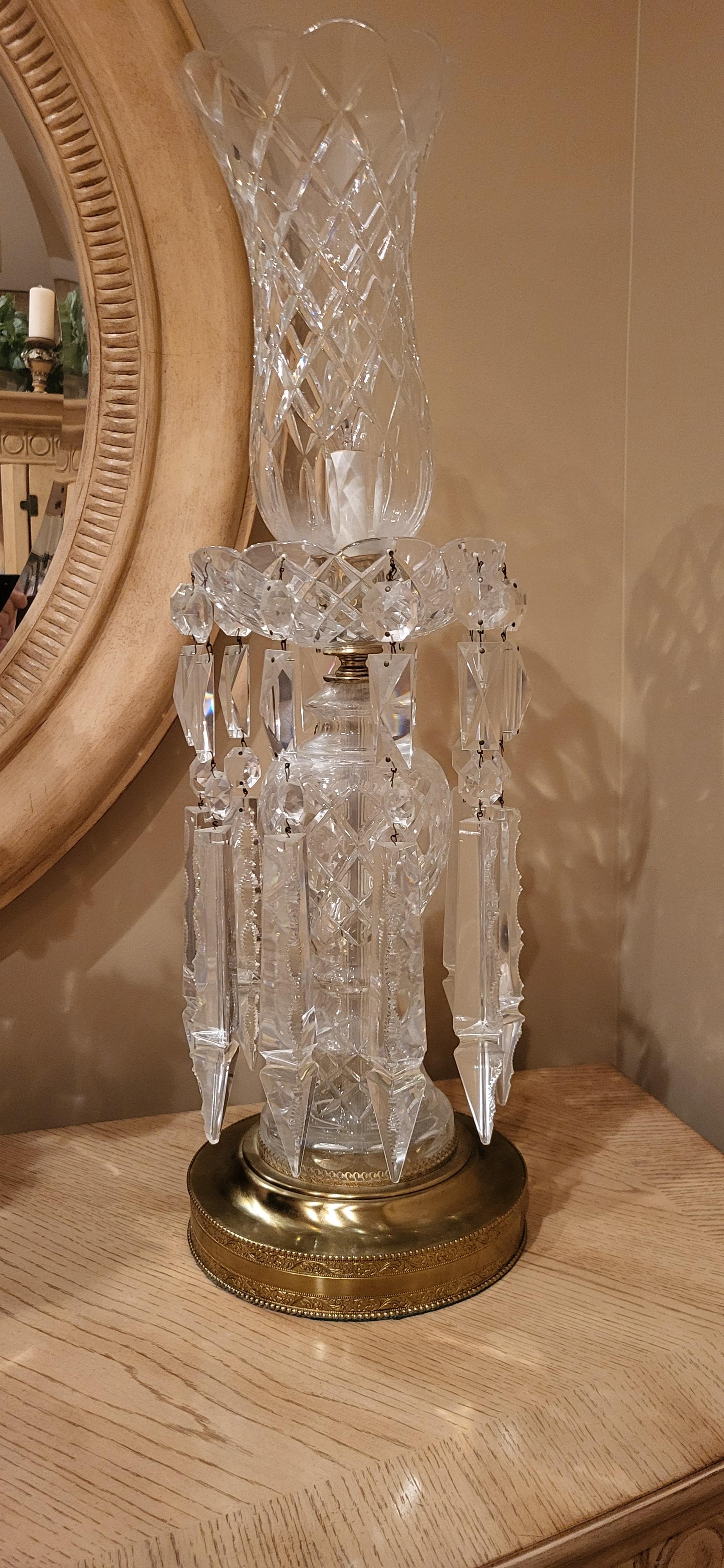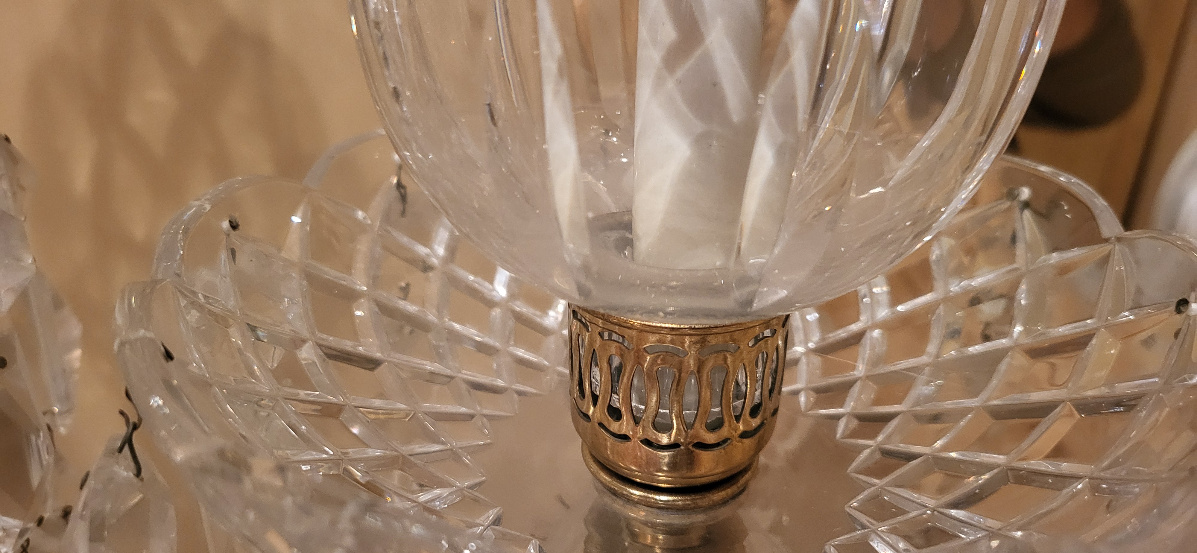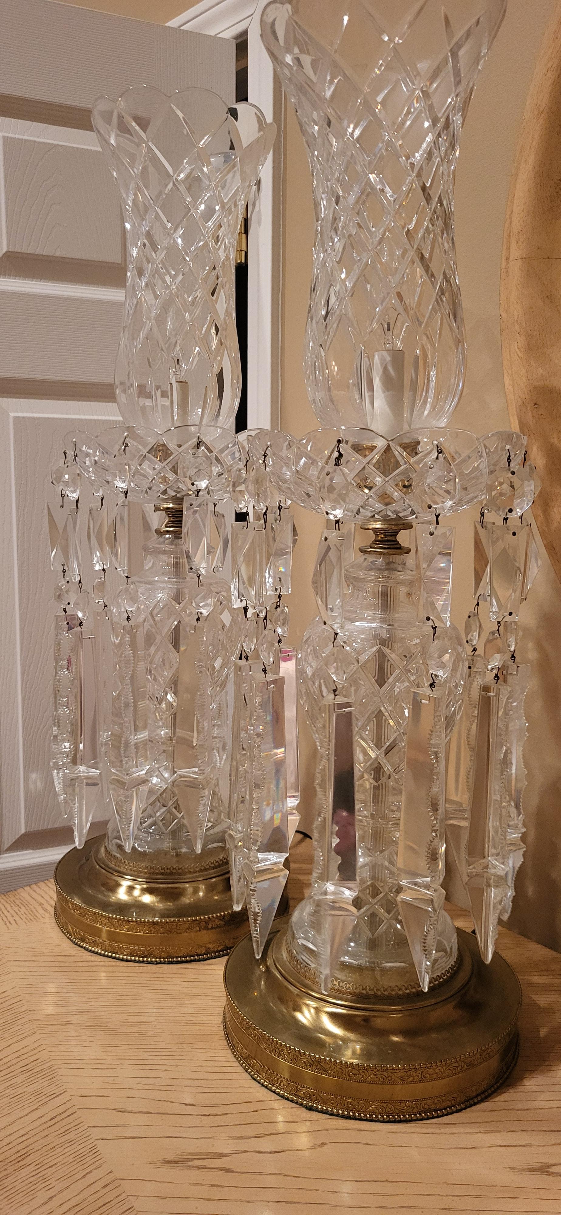 - Each lamp has ten 14 inch hanging crystal prisms arranged around the lamp