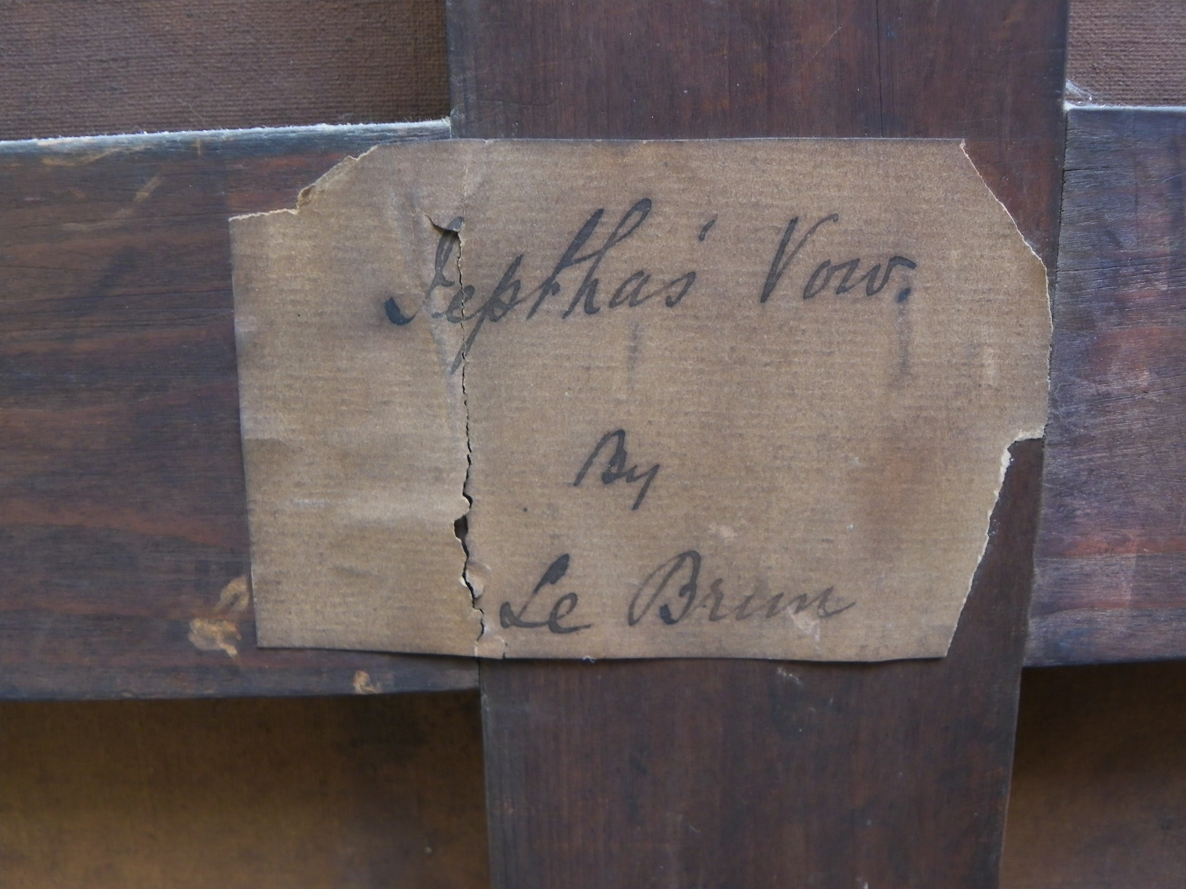 I have this painting and on the reverse found a' by le brun inscription to the back' with the title of the painting subject a biblical story of Jephthah's daughter.