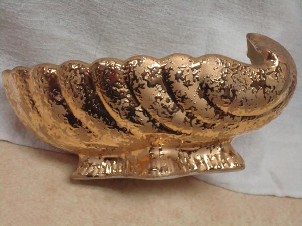 We are not sure about the name on the bottom, it looks like the correct spelling. It is drip gold on the outside. any history and value about this item would be appreciated. Thanks.