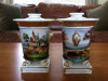 the two vases have the same picture painted on the front and back of them