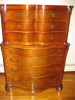 lea bedroom tall dresser, it has brass handles, and i think it is mahgony wood, has five drawers,it has a swirl design on each side of the five handle, its in good condition, its a heavy wood. it was my aunts, then my moms, then mine.