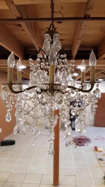 I have, what I was told a lead crystal chandelier, it came with the house when we purchased it 11 years ago. It has been hanging in my basement since. So can anyone look at it and give me an idea of its worth or who made it? There are no maker markings that I can see.