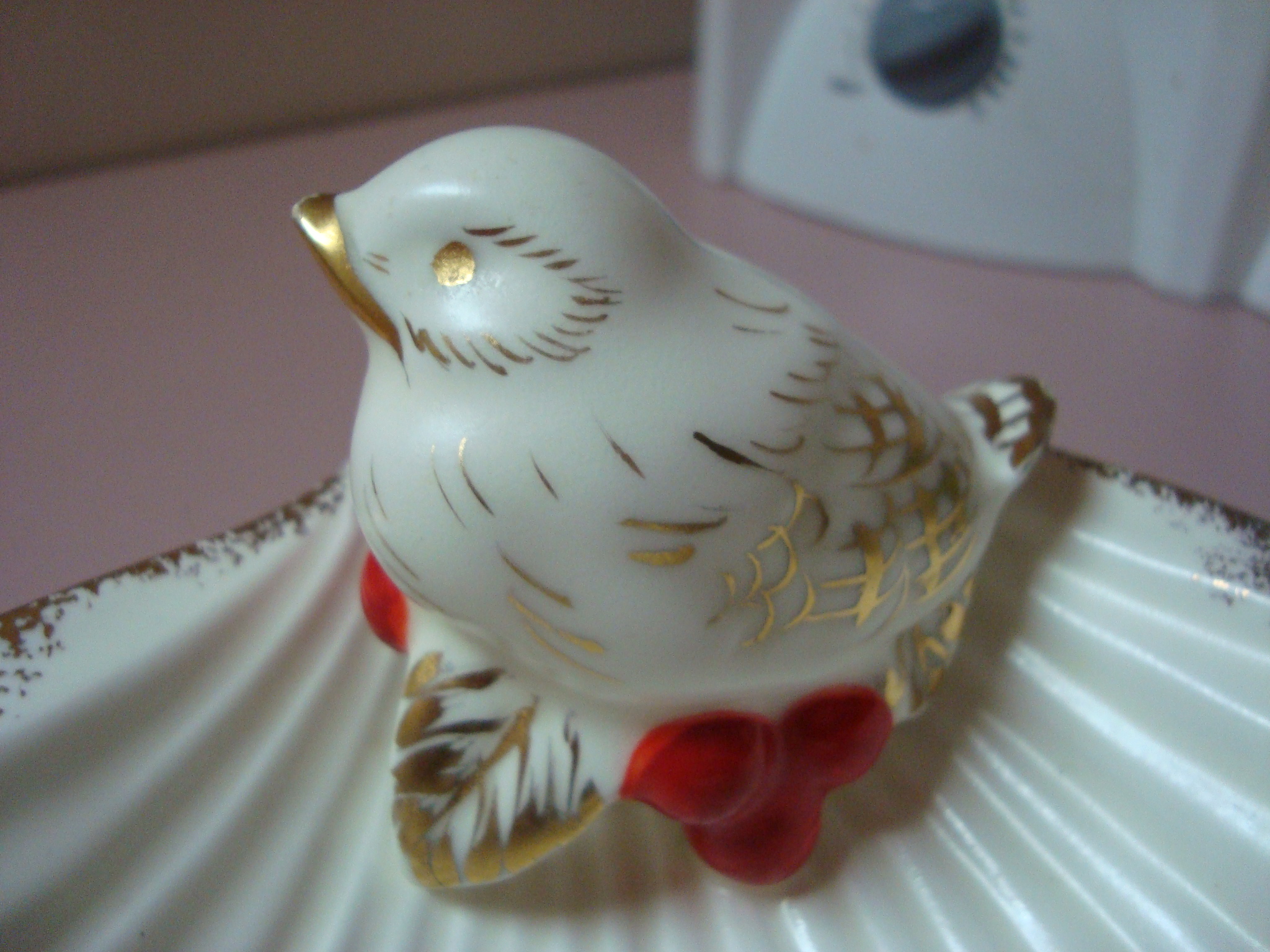 10 in.x 6 1/2 in dish, bird 1 1/2 in high x 2 1/2 in long