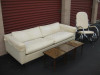 In terms of condition, the sofa is rated at 2 out of 5. It is in excellent condition overall, having been kept in a pet-free and smoke-free home. However, it does exhibit a few minor scratches on the leather surface, particularly on the seat cushions and arms, which are typical wear for a used piece. There are no signs of fading or cracks, indicating the leather has been well maintained.